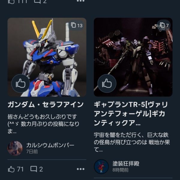 塗装狂主任 塗装狂主任さんのページ コピー https://gumpla.jp/author/HeiZensan facebook X LINE GUNSTAのロゴ等の使用 愛してるんだぁぁぁぁぁぁ君たちをぉぉぉぉぉぉぉぉぉぉぉぉ!!!!!!!!!!!!!HAHAHAHAHAHA!!!!!!!!!!!!!!!!!!!!!!!!!! 面白いが原動力のジオニスト 塗装歴2年 153フォロー 179フォロワー 作品一覧102 制作中 つぶやき プロフィール お気に入り アーカイブ 1 クラスターガンダム予約の予定はなかったが メガ・ビーム・バズーカに惹かれて予約してしまった… クラスターガンダム予約の予定はなかったが メガ・ビーム・バズ… クラスターガンダム予約の予定はなかったが メガ・ビーム・バズーカに惹かれて予約してしまった ミッションパックVも予約したがヴェスバーを装備させることができるのは大きい なんて素敵なんだ 1 組む予定だったゲルググメナースのカラーリングが決まった 切り出すか 組む予定だったゲルググメナースのカラーリングが決まった 切り… 組む予定だったゲルググメナースのカラーリングが決まった 切り出すか 1 崩れた天候のせいで塗装が捗らぬ 仕事のある日は朝しか塗装の時間がないというのに 崩れた天候のせいで塗装が捗らぬ 仕事のある日は朝しか塗装の時… 崩れた天候のせいで塗装が捗らぬ 仕事のある日は朝しか塗装の時間がないというのに 2 無事に組み終わったこのダブルオーコマンドクアンタデザートタイプまだいじれる余地があるから … 無事に組み終わったこのダブルオーコマンドクアンタデザートタイ… 無事に組み終わったこのダブルオーコマンドクアンタデザートタイプまだいじれる余地があるから 前に買ったオプションパーツセットと混ぜ合わせてフルアーマー化させてみるか ウェザリング塗装を追加し 写真を更新 ウェザリング塗装を追加し 写真を更新 メイン写真を変更 メイン写真を変更 1 止まぬ雨が俺が塗装したい気分の時にぶち当たらないと良いのだが 止まぬ雨が俺が塗装したい気分の時にぶち当たらないと良いのだが 止まぬ雨が俺が塗装したい気分の時にぶち当たらないと良いのだが 4 文章を書いてて少し涙ぐんでしまった 文章を書いてて少し涙ぐんでしまった 文章を書いてて少し涙ぐんでしまった 1 ザウォートをAC風に弄る構想が固まってきた 寝落ちしなかったら組むか ザウォートをAC風に弄る構想が固まってきた 寝落ちしなかった… ザウォートをAC風に弄る構想が固まってきた 寝落ちしなかったら組むか 1 エントリーグレードのνガンダムの名前を決めた νガンダム・シルト エントリーグレードのνガンダムの名前を決めた νガンダム・シ… エントリーグレードのνガンダムの名前を決めた νガンダム・シルト 2 俺νガンダムの為にエントリーグレードのνガンダムを買い叩いた 俺νガンダムの為にエントリーグレードのνガンダムを買い叩いた 俺νガンダムの為にエントリーグレードのνガンダムを買い叩いた 1 相互さんが増えてありがたく思う こんなにも俺のガンプラを見てくださる方々がおるからな 相互さんが増えてありがたく思う こんなにも俺のガンプラを見て… 相互さんが増えてありがたく思う こんなにも俺のガンプラを見てくださる方々がおるからな 1 高機動型ザク・スタークカノンが80いいねを超えた 多くの方々にこんなにも速くご愛顧頂けると… 高機動型ザク・スタークカノンが80いいねを超えた 多くの方々… 高機動型ザク・スタークカノンが80いいねを超えた 多くの方々にこんなにも速くご愛顧頂けるとは真に有り難い 1 失敬失敬 今日公開予定の高機動型ザク・スタークカノンの下書きを間違えて公開してしまったわい… 失敬失敬 今日公開予定の高機動型ザク・スタークカノンの下書き… 失敬失敬 今日公開予定の高機動型ザク・スタークカノンの下書きを間違えて公開してしまったわい 面汚し失礼した 2 塗装用のエアダスターとサビ止めサーフェイサー諸々を調達 塗装用のエアダスターとサビ止めサーフェイサー諸々を調達 1 いいねし過ぎで制限がかかると最近知ったが 恐ろしいな 俺は目について好きなやついいね片端か… いいねし過ぎで制限がかかると最近知ったが 恐ろしいな 俺は目… いいねし過ぎで制限がかかると最近知ったが 恐ろしいな 俺は目について好きなやついいね片端から押すからな 2 ミキシングと全塗装の週間人気作品に 俺のギャプランTR-5[… ミキシングと全塗装の週間人気作品に 俺のギャプランTR-5[ヴァリアンテフォーゲル]が並んでおった ありがたい 1 もうすぐヴァリアンテフォーゲルが完成する もうすぐヴァリアンテフォーゲルが完成する もうすぐヴァリアンテフォーゲルが完成する 1 ヴァリアンテフォーゲルのカラーリング(深刻な鶏頭だから忘れねえように) スターブライトアイ… ヴァリアンテフォーゲルのカラーリング(深刻な鶏頭だから忘れね… ヴァリアンテフォーゲルのカラーリング(深刻な鶏頭だから忘れねえように) スターブライトアイアン+ブルー系 黒サフ+ガンメタ ガンメタ+クリアパープル 1 仕事終わりに鞭打って