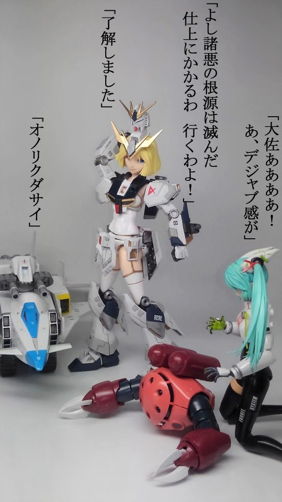 ストーリーに意識が奪われがちの中、やはりセイラ様とニューガンダムの合体は完成度の高さと、遊び心の融合、見事でございます!