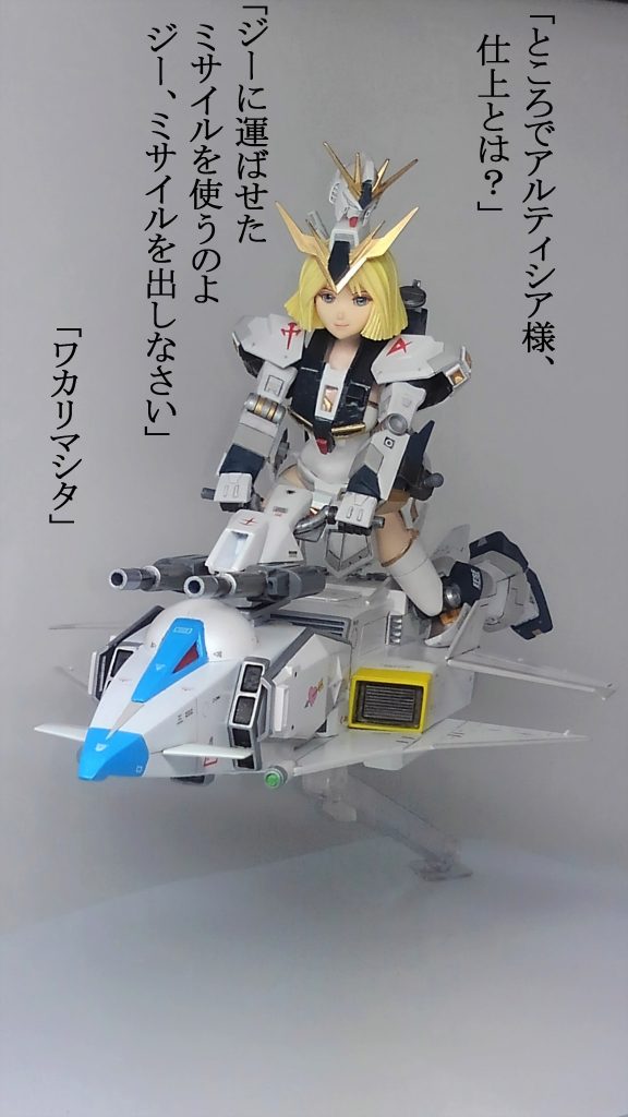 セイラのMS形態はなかなか相性が良くて上手く行ったかな?と思います・・・あ、デカール貼るのを忘れてた・・・w お腹にEFSF貼ろうとかいろいろ考えてたんですが、すっかり忘れるw