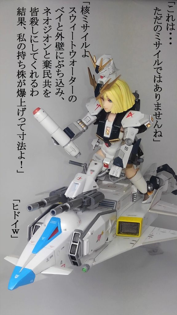 このネタはずっとあったんですよね。ロリコンとクエスを主人公が成敗するところですね。前回のミンメイで使ってしまったんですが、セイラが主人公で逆襲のシャア兄妹対決版が本筋でした。株云々は説得力出るかなとw