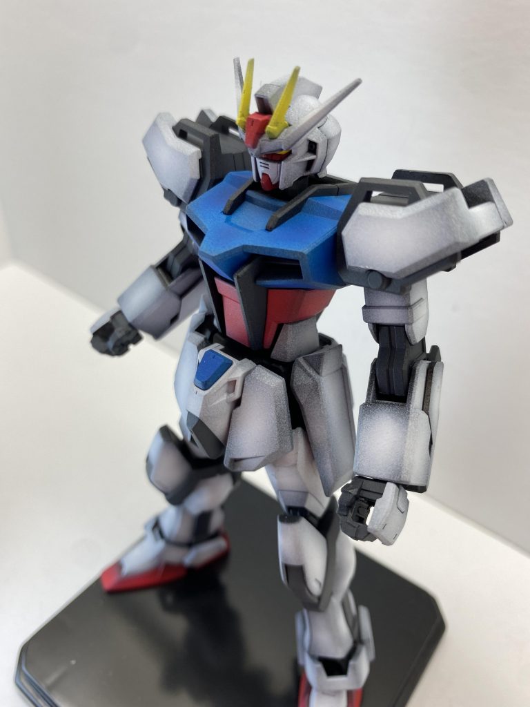 僕は技術不足でベタ塗りしかできないので、グラフェンさんのストライクはすごく目の保養と技術の真似しようって思えるいいガンプラです(gandam-hand2)