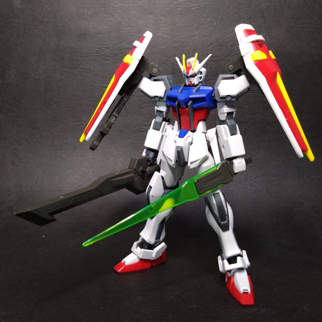 EGストライクをベースに両肩にシールド、大型実体剣、ビームライフル、ビームソードを装備させ、カラーリング変更しています。