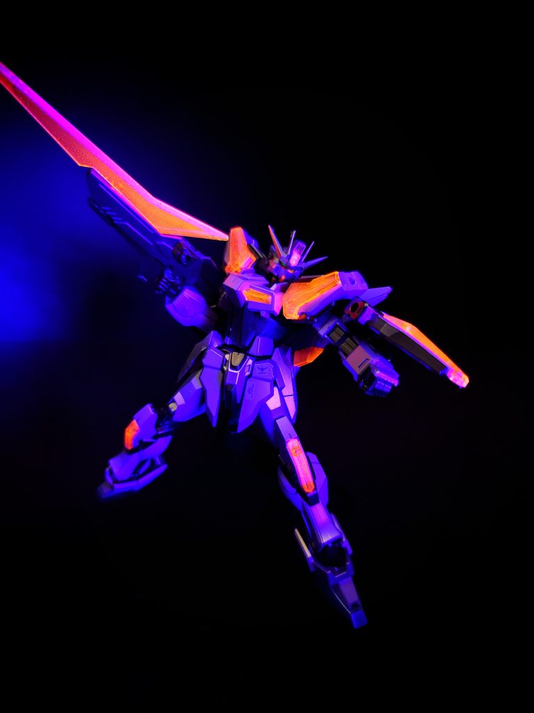 イオリ・セイが使用する「EG ストライクガンダム」の改造機。基礎性能で不利なEGをベースとした理由は、キャリアを問わずすべてのガンプラユーザーに向けられたEGキットと向き合うことで、ビルドストライクの新たな可能性を見出そうとしたセイの発想に起因している。従来のビルドストライク系列の「RGシステム」を応用したエネルギー超光循環機構「EG (Energy Glitter-circulation)システム」を採用しており、機体の各所に適宜エネルギーを集中させることで、攻防や機動時の状況に応じた多元的なブーストアップを実現している。