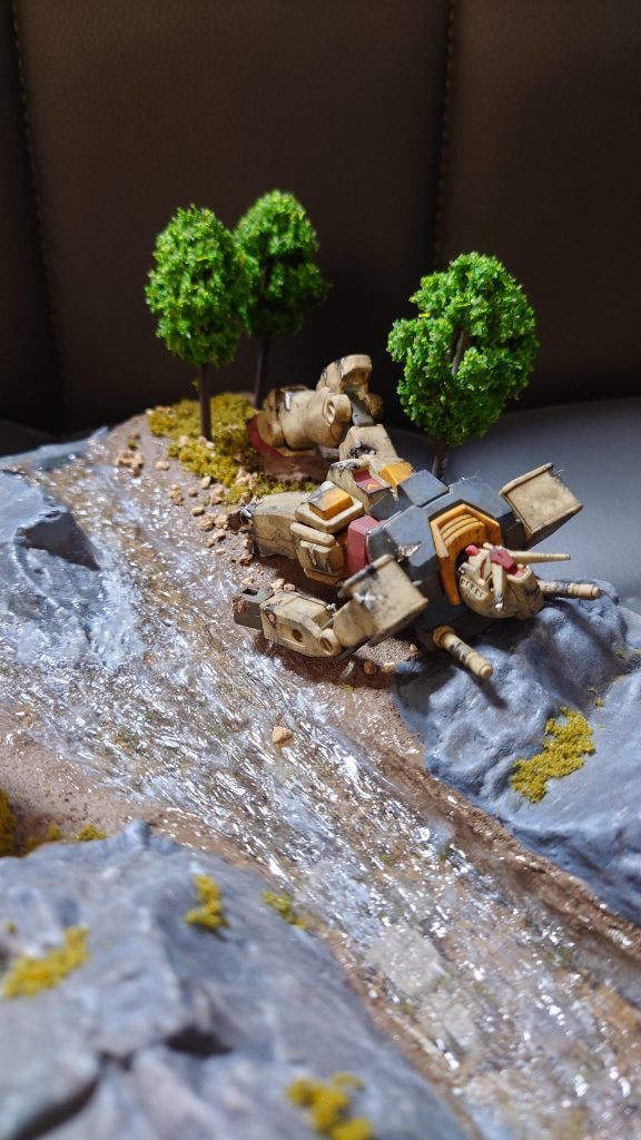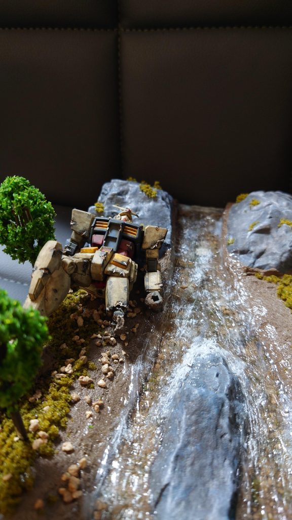 どうしても河辺で倒れているイメージが離れず、河のジオラマも作りました。
