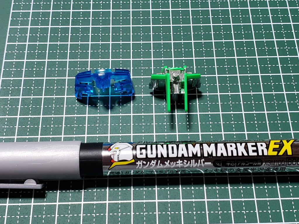 外装パーツに被る部分はガンダムマーカーのメッキシルバーでペン塗りしてます🎵