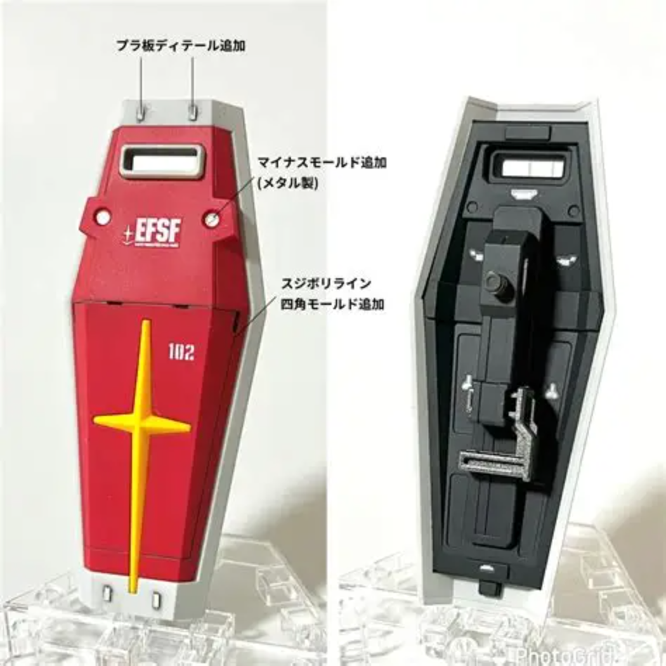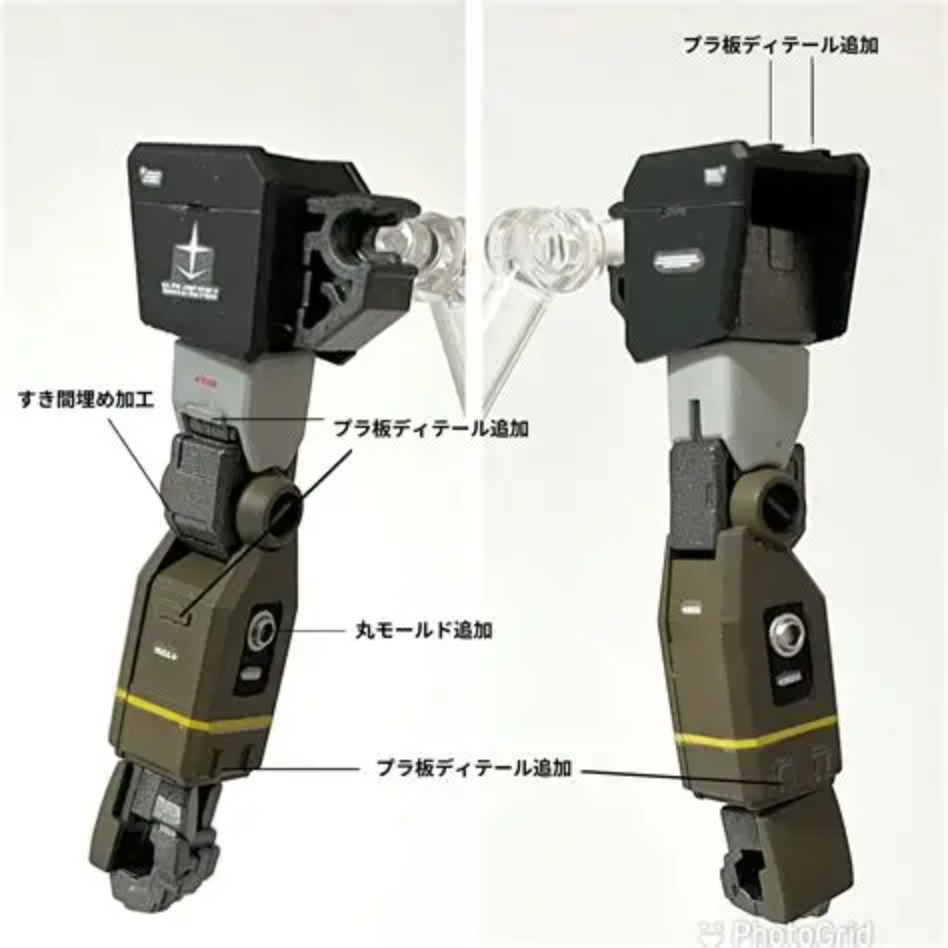 EGではお約束ですが、関節部から向こう側が見えてしまうのでプラ版でフタをして隙間うめ加工をしています。