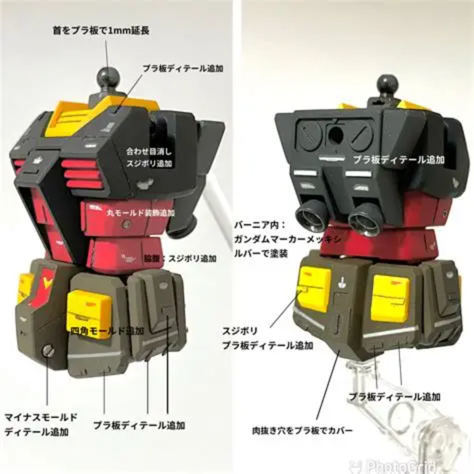 全体的にプラ板やスジボリでディテールアップを行い、解像度を高めています。
