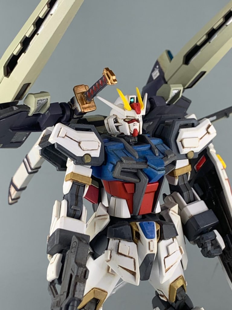 ストライクガンダム本体はセイラマスオさん風のディテールを入れています。塗料も水性塗料を使っています。