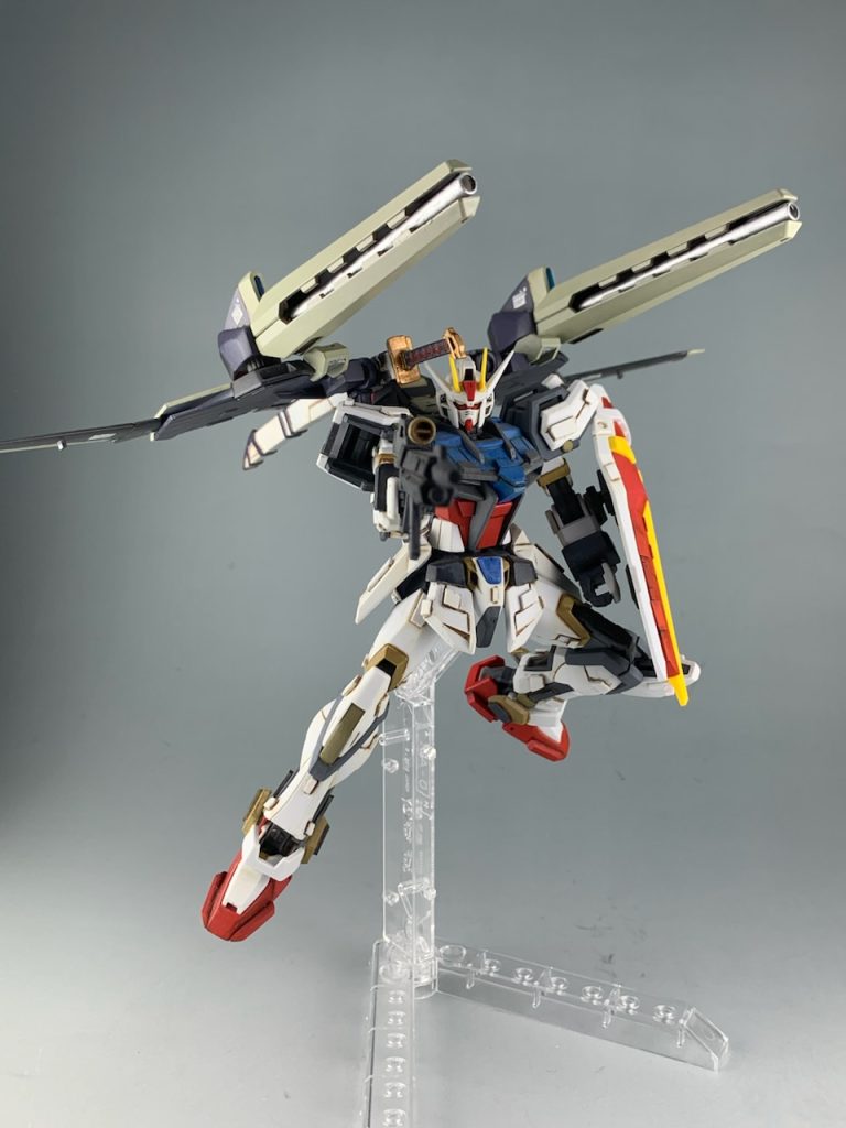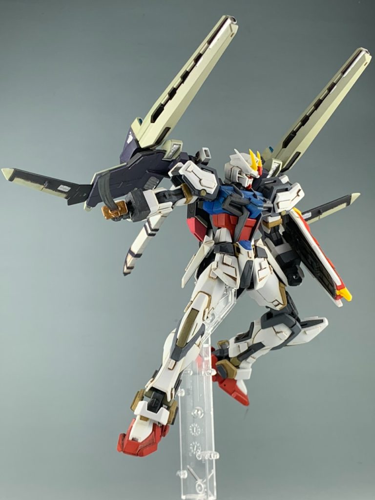 この前作成したオリジナルストライカーをEGのストライクガンダムにつけました。