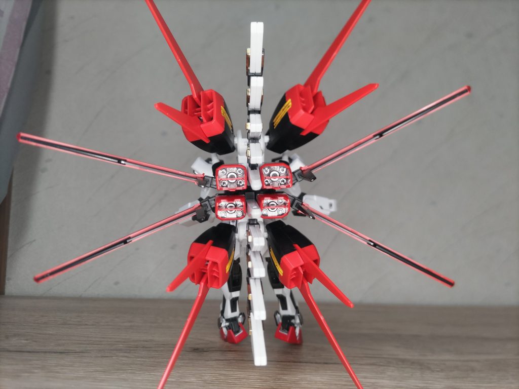 今回やりたかったことはダブルエールストライクです。2個付けで2倍速くなるのではと思い組み立てました。基本改造しすぎると設定から外れそうなのでジョイントで工夫する事にしました。