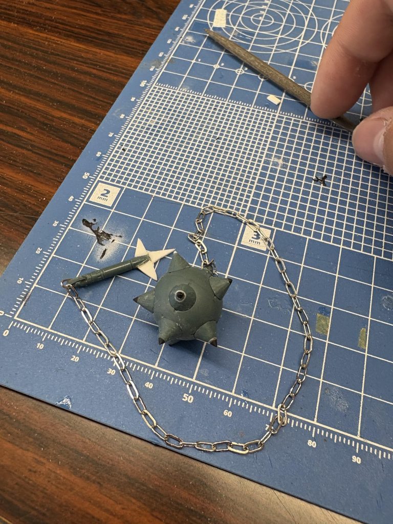 チェーン以外にも持ち手をプラ板で作り直しハンマー本体も合わせ目消しやエッジを出すなどして加工しました。