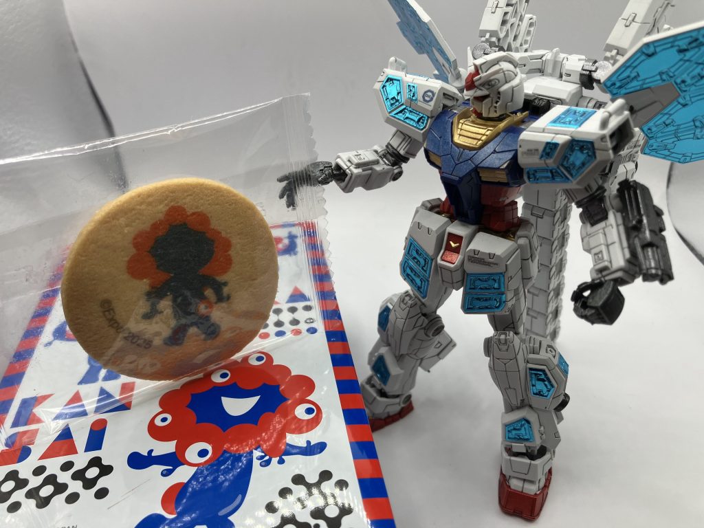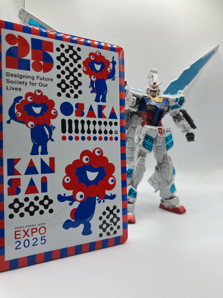 ミャクミャクの缶クッキーと。この缶ちょうど1/144ガンダムしまえそう。