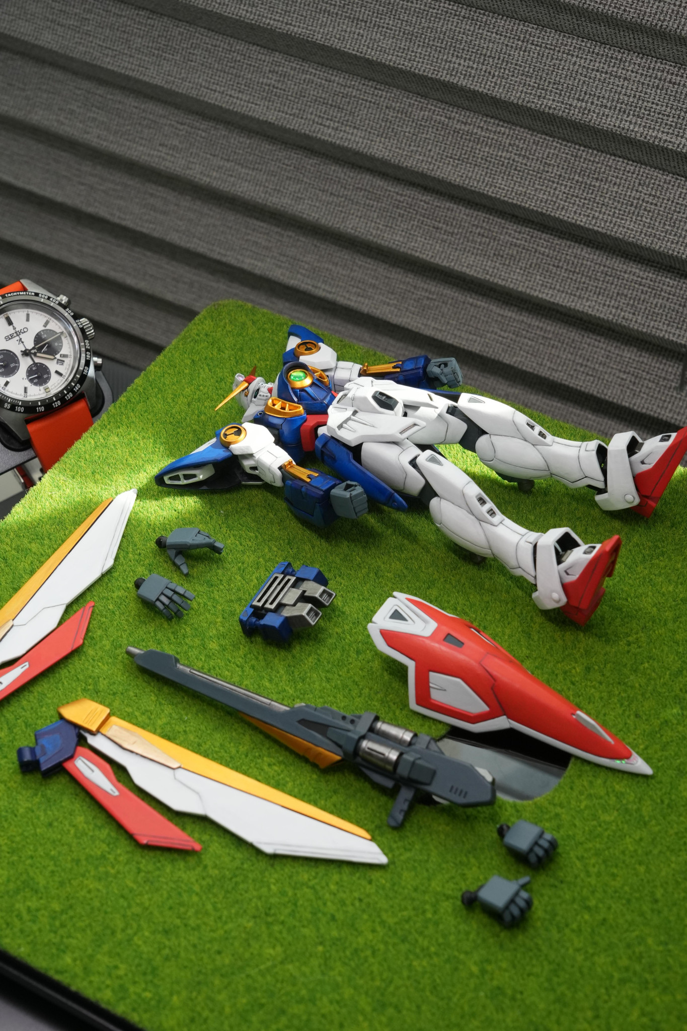 I also hand-painted a 1/144 Heero Yuy figure found in my old RG Wing Gundam EW kit - his classic-pose is the best!