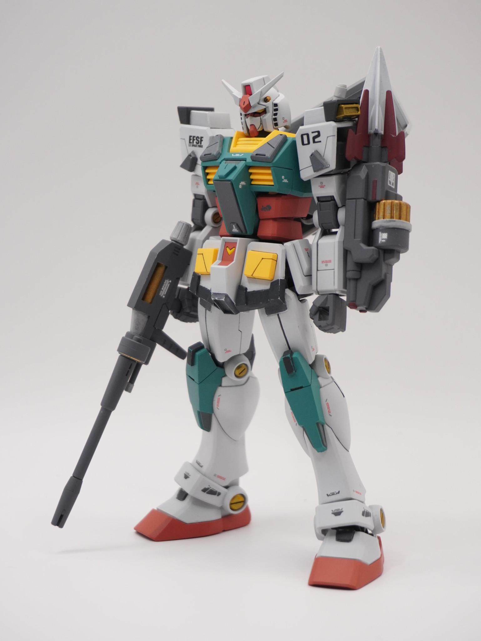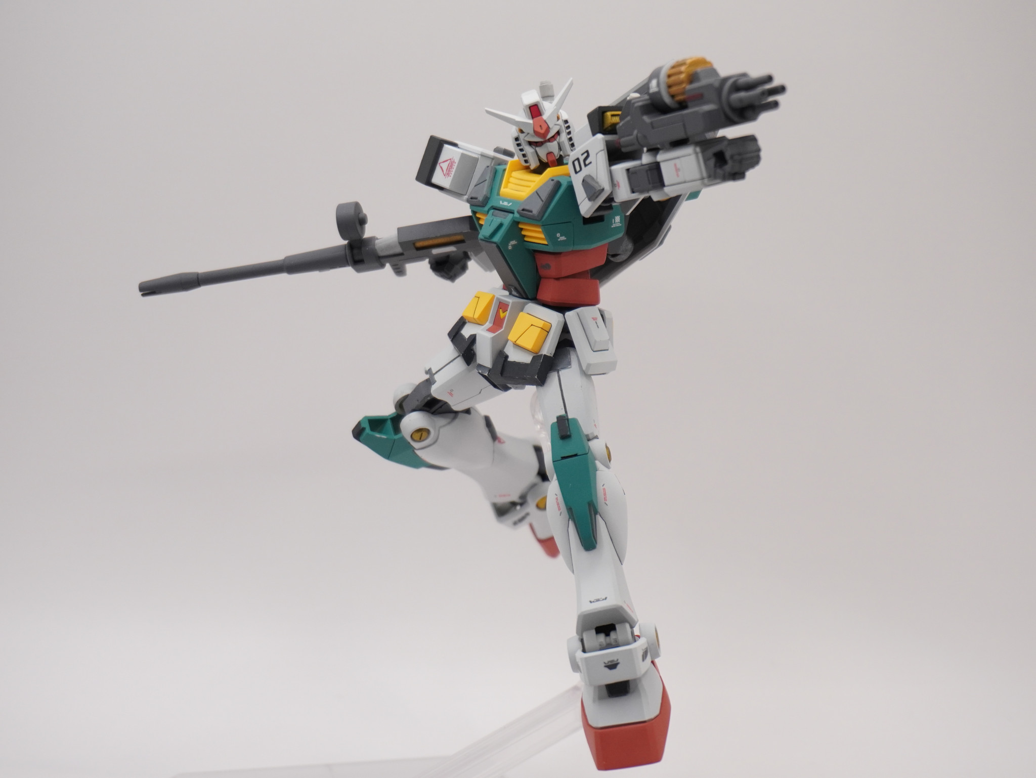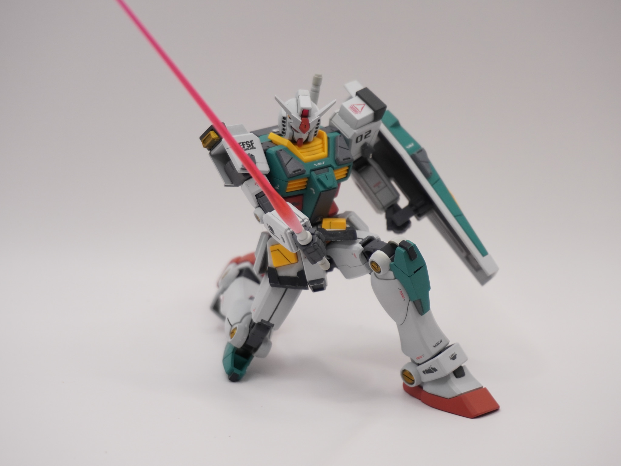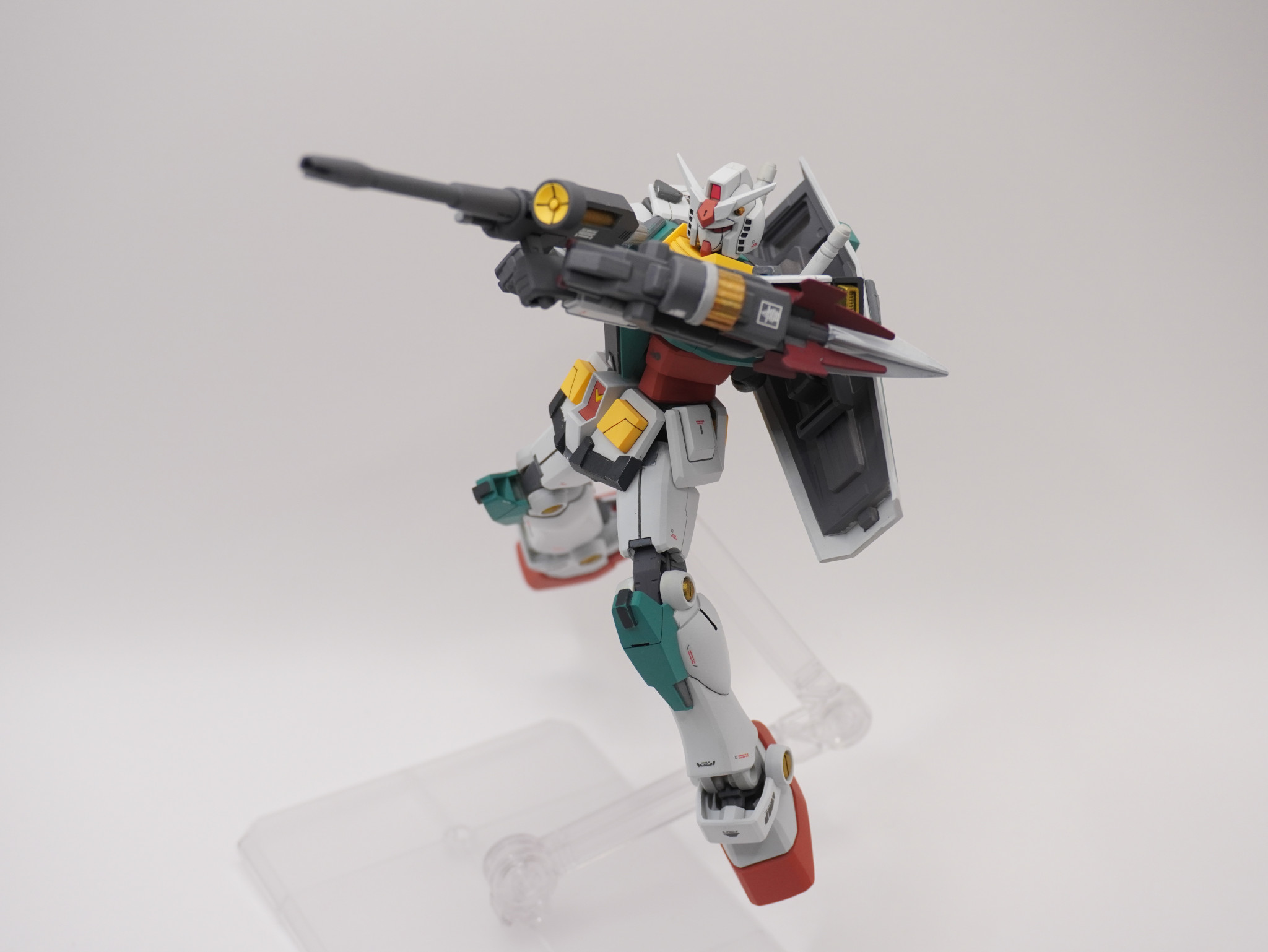 3日で作ったといいつつ、ライフルは昔HGUCガンダムを改造しようとしたときの遺産です。プラ棒で延長してロングライフルっぽくしています。