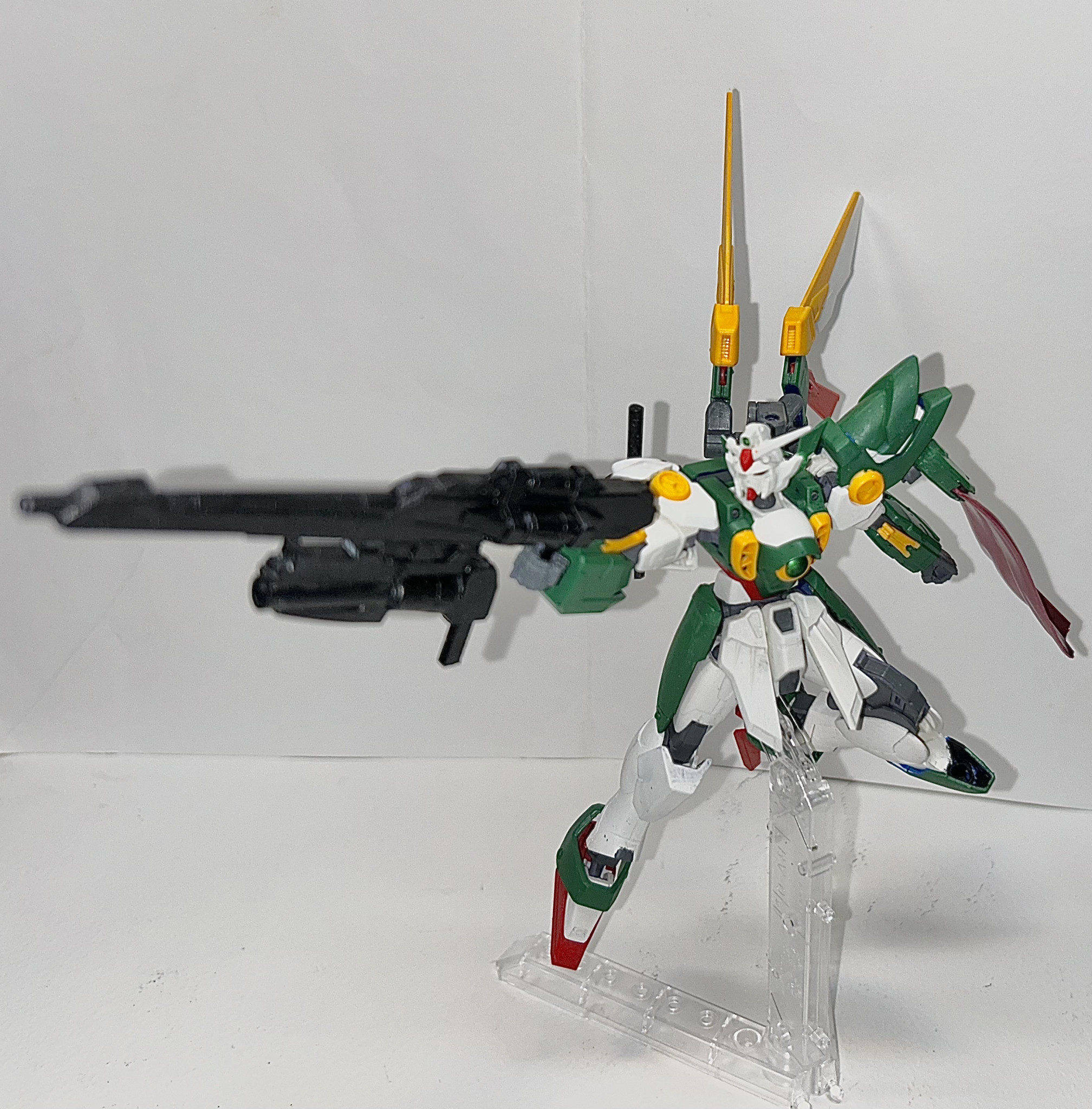 バスターライフルカスタム。下部に取り付けられたハンドガンにはRGウイングEWのカートリッジパーツを使っています。もちろん分離して使用も可能。