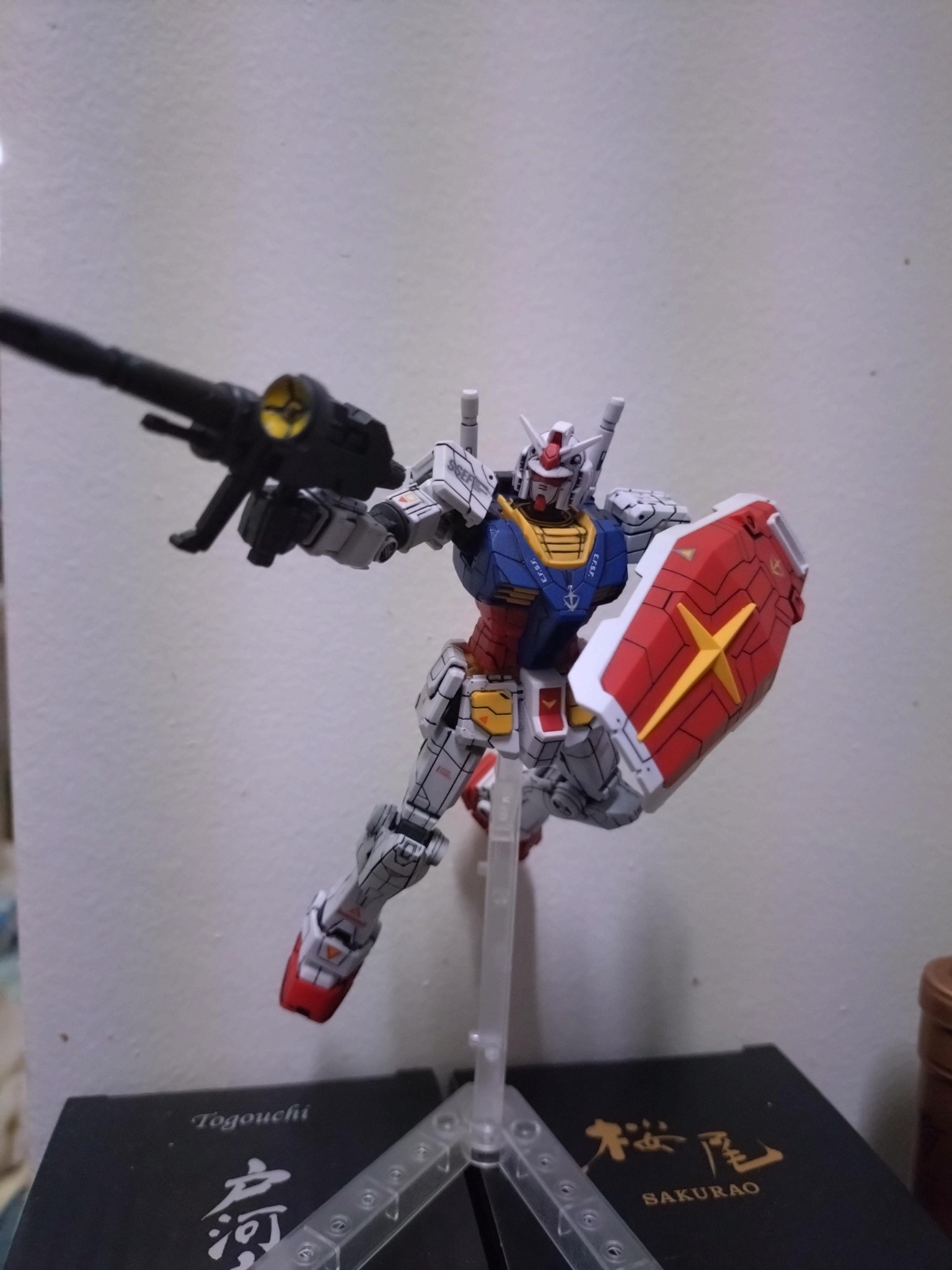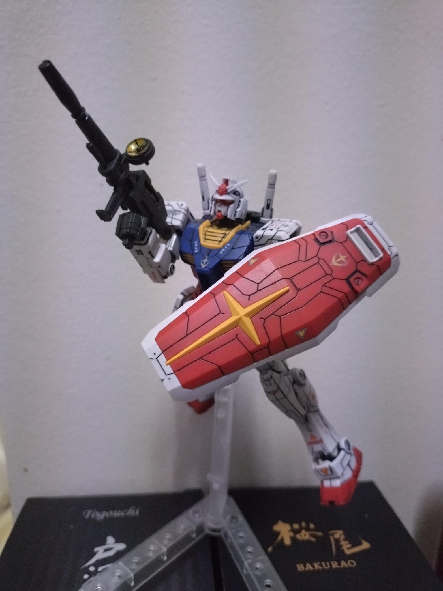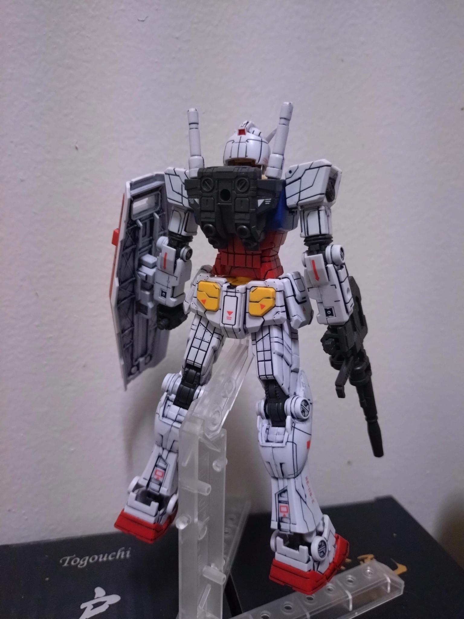 撮影場所無くて酒の上で失礼。エントリーグレードの万博ガンダム完成しやした。ゲート処理(一部忘れ)、墨入れ、デカール貼り、トップコートでフィニッシュです。簡単なの作りてぇなぁと思って3週間前位に本体組み上げて、先日デカール貼り、本日トップコートで完成となりました。