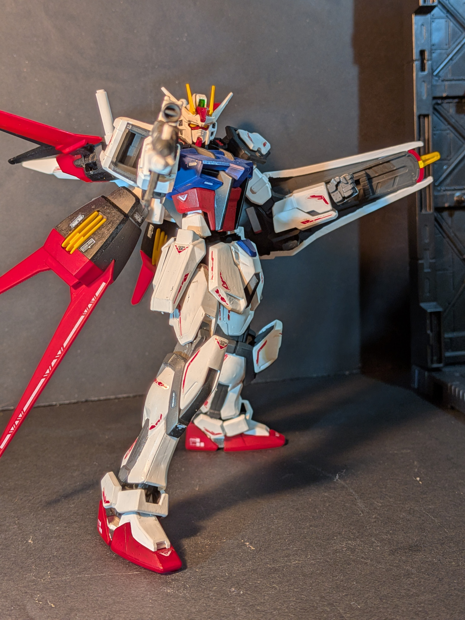 EGストライク、エール装備です。100均のカタパルトを使ってます。いやー100均侮れません。