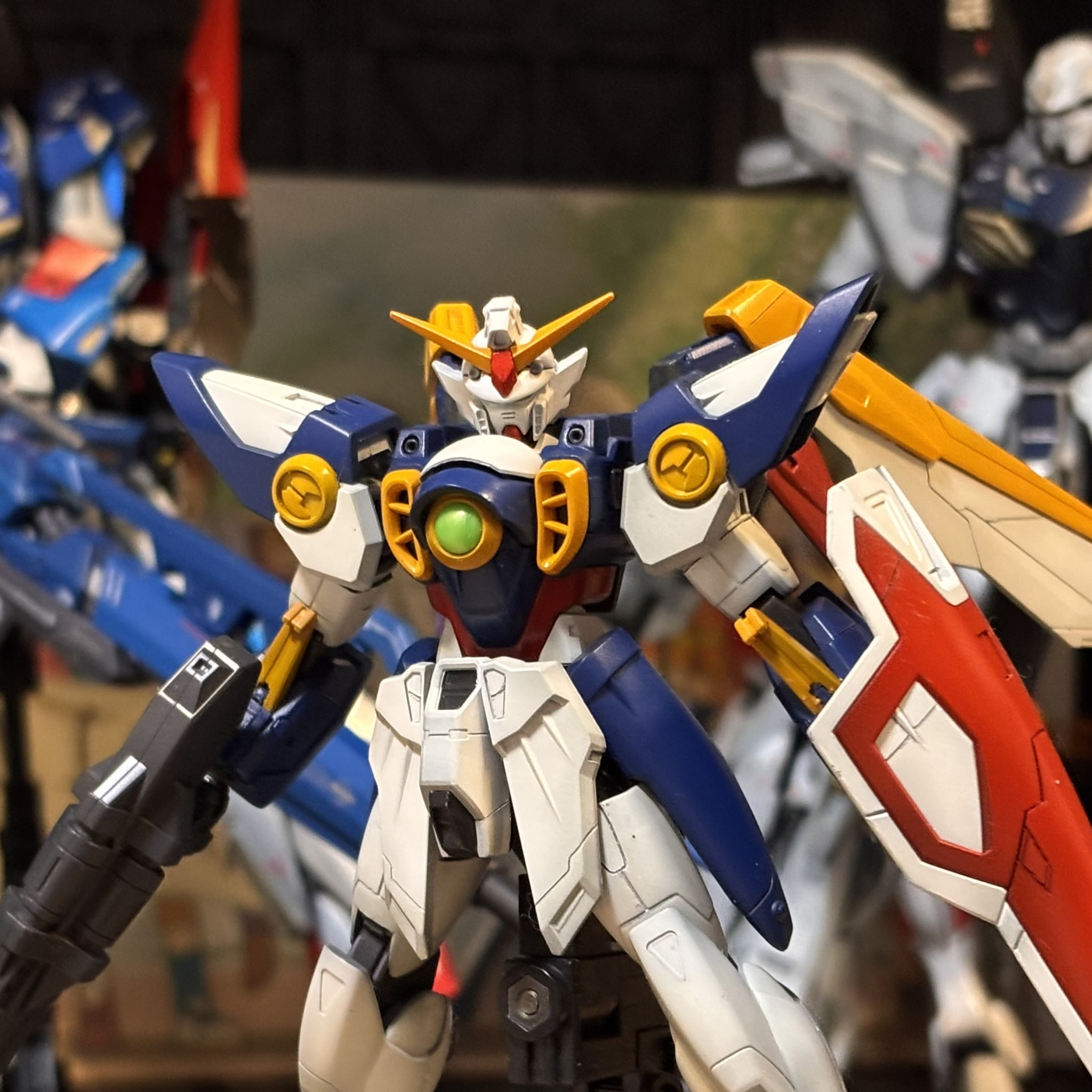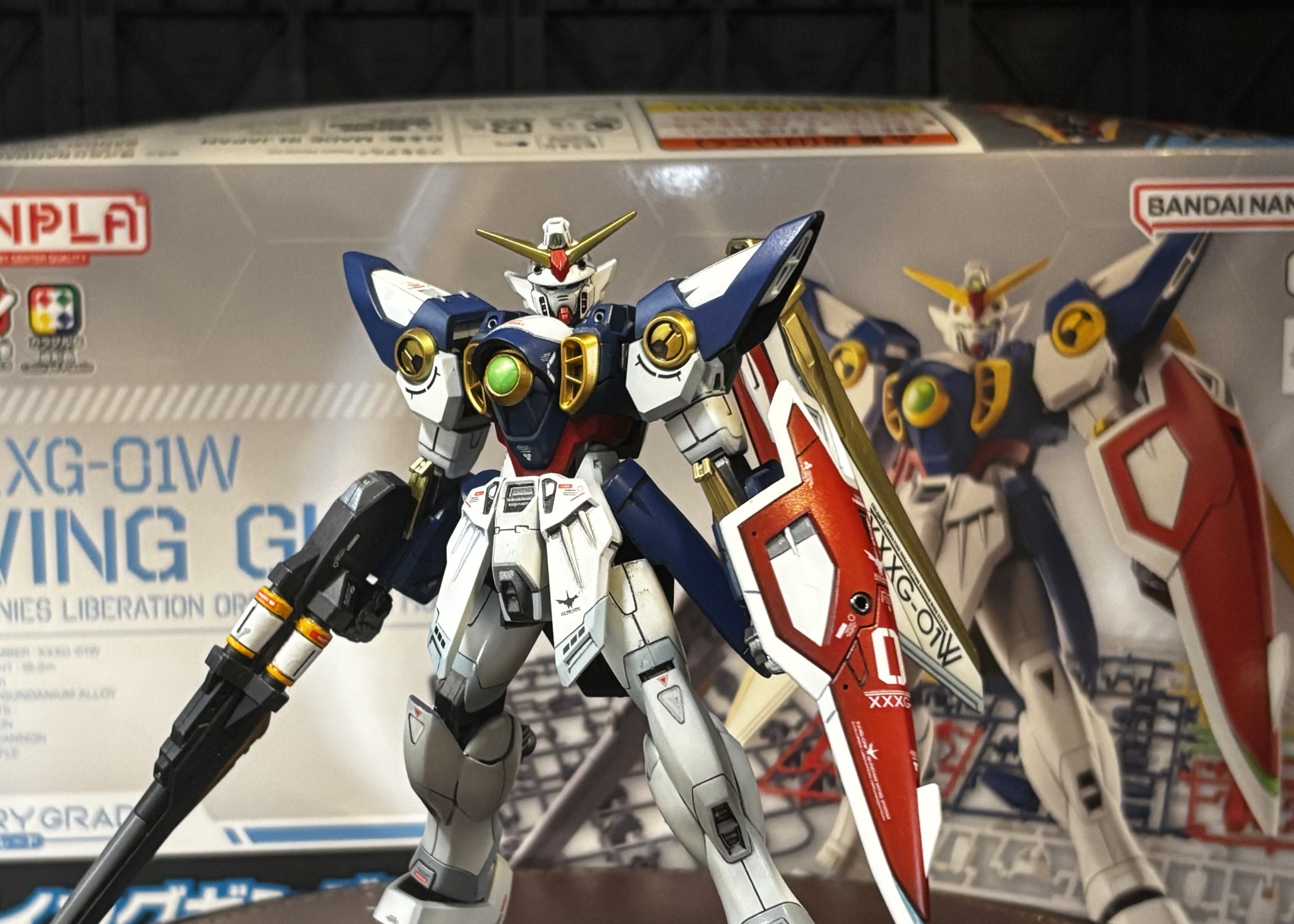エントリーグレードの最新キット、ウイングガンダムを仕上げました。数箇所の関節改善、筋彫り追加でディティールアップ、エアブラシで全塗装、そして RGウイング専用デカールです。