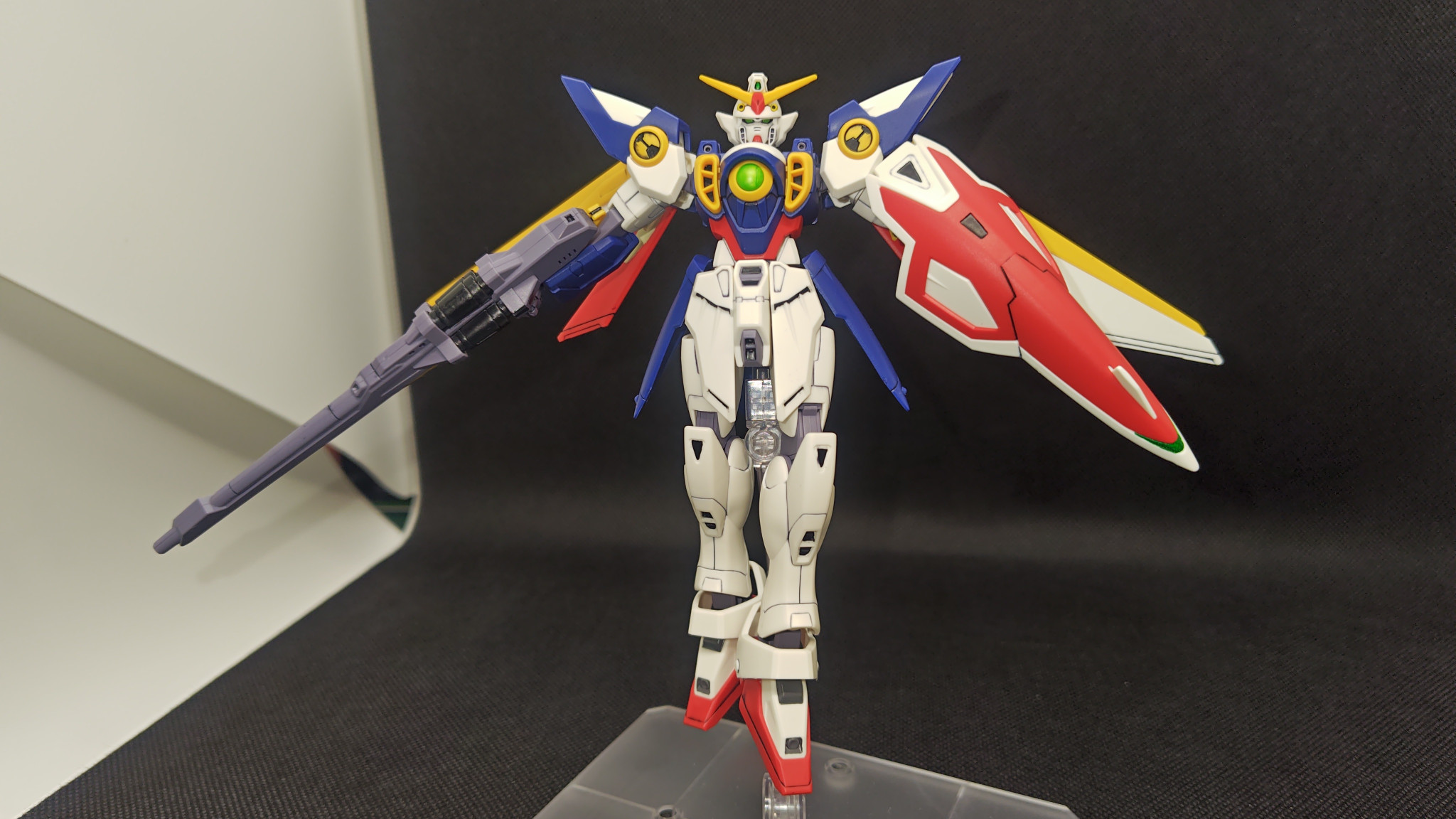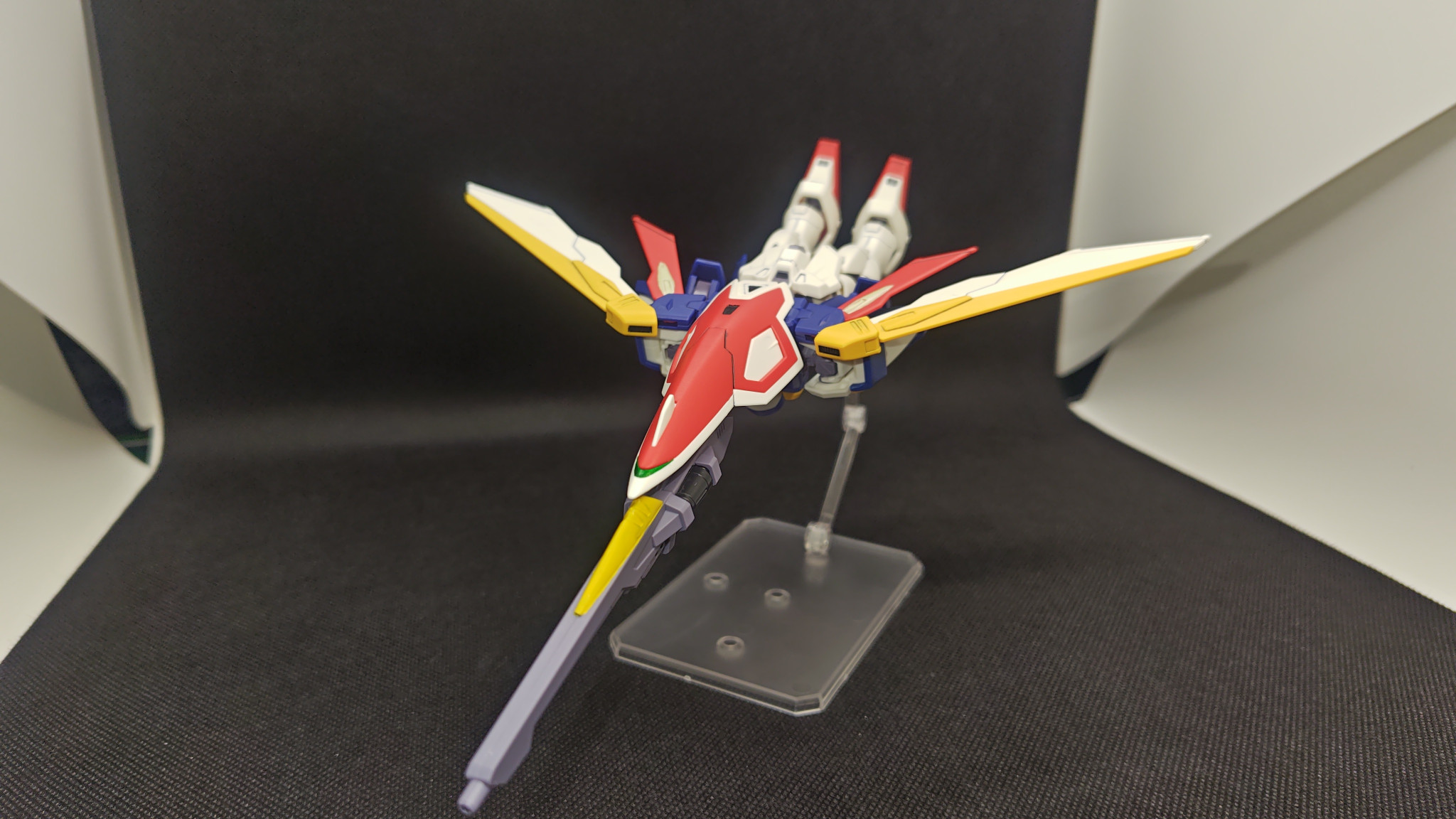 新機動戦記ガンダムWから、EGウイングガンダム。ガンダムW30周年企画の〆のつもりで組みました。ホビーショーで初めて見たときはビックリした記憶があります。