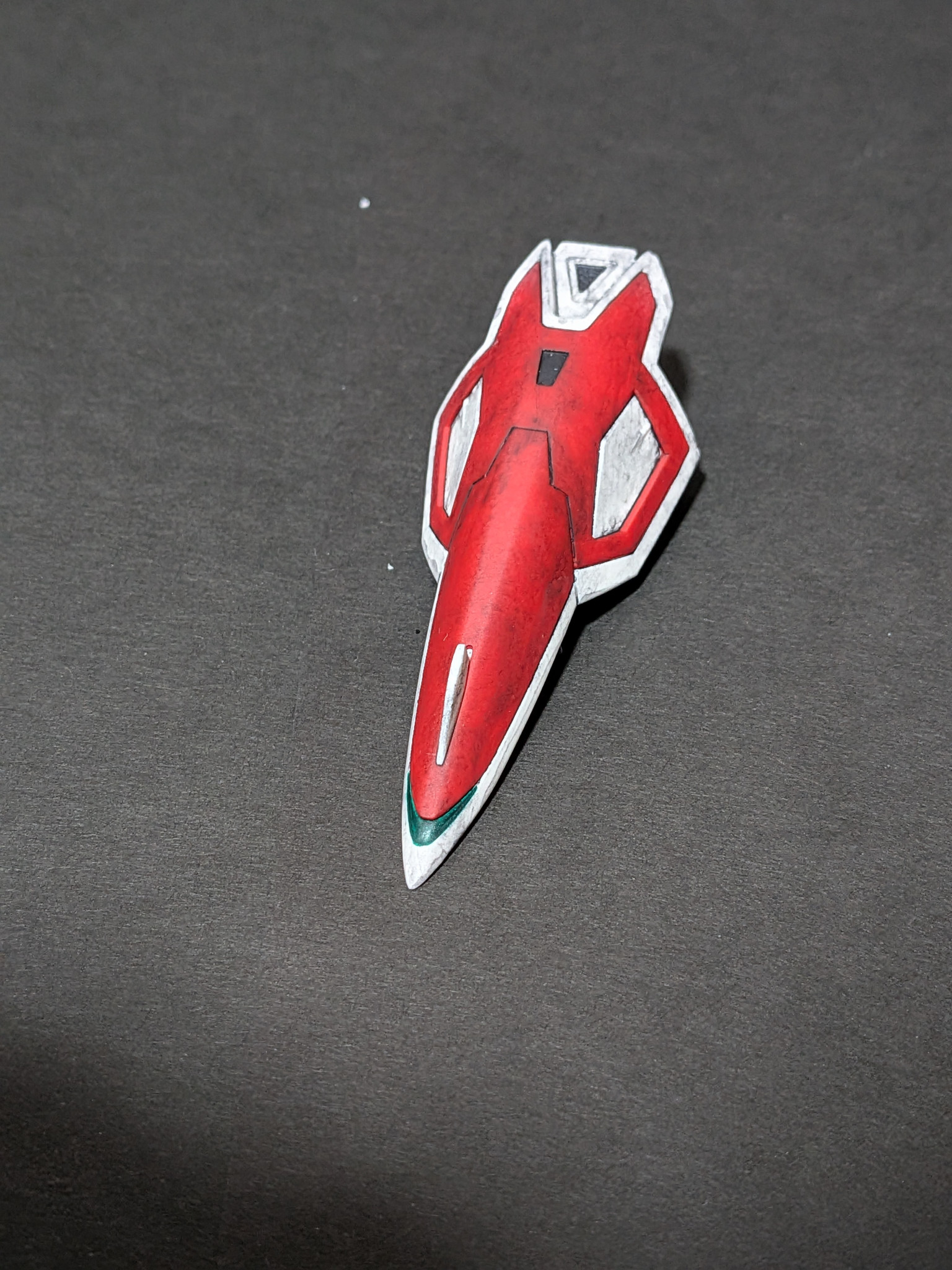 ブラックはリアルタッチマーカーブラックを重ね塗りしました。先端のグリーンは100均のモデラーマーカーメタリックグリーン使用しました。