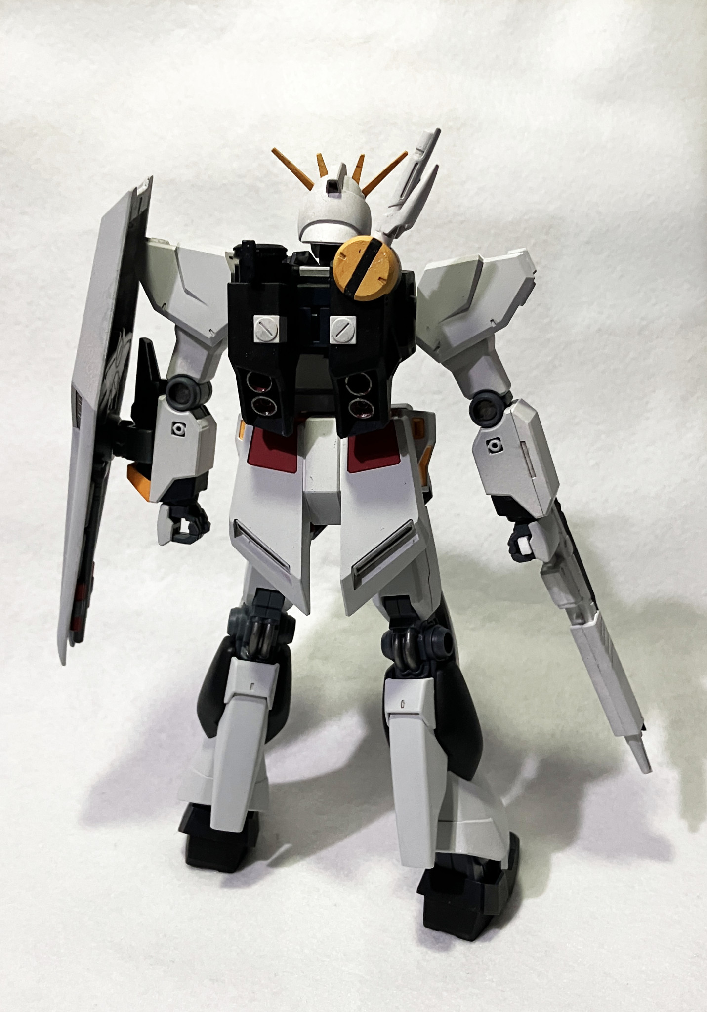 スラスターや膝裏のパイプなどは銀で塗ってます。見づらいですがスラスター内部は赤。太もも裏のスラスターも同様に塗ってます(普通に動かしてたら見えない部分ですが)