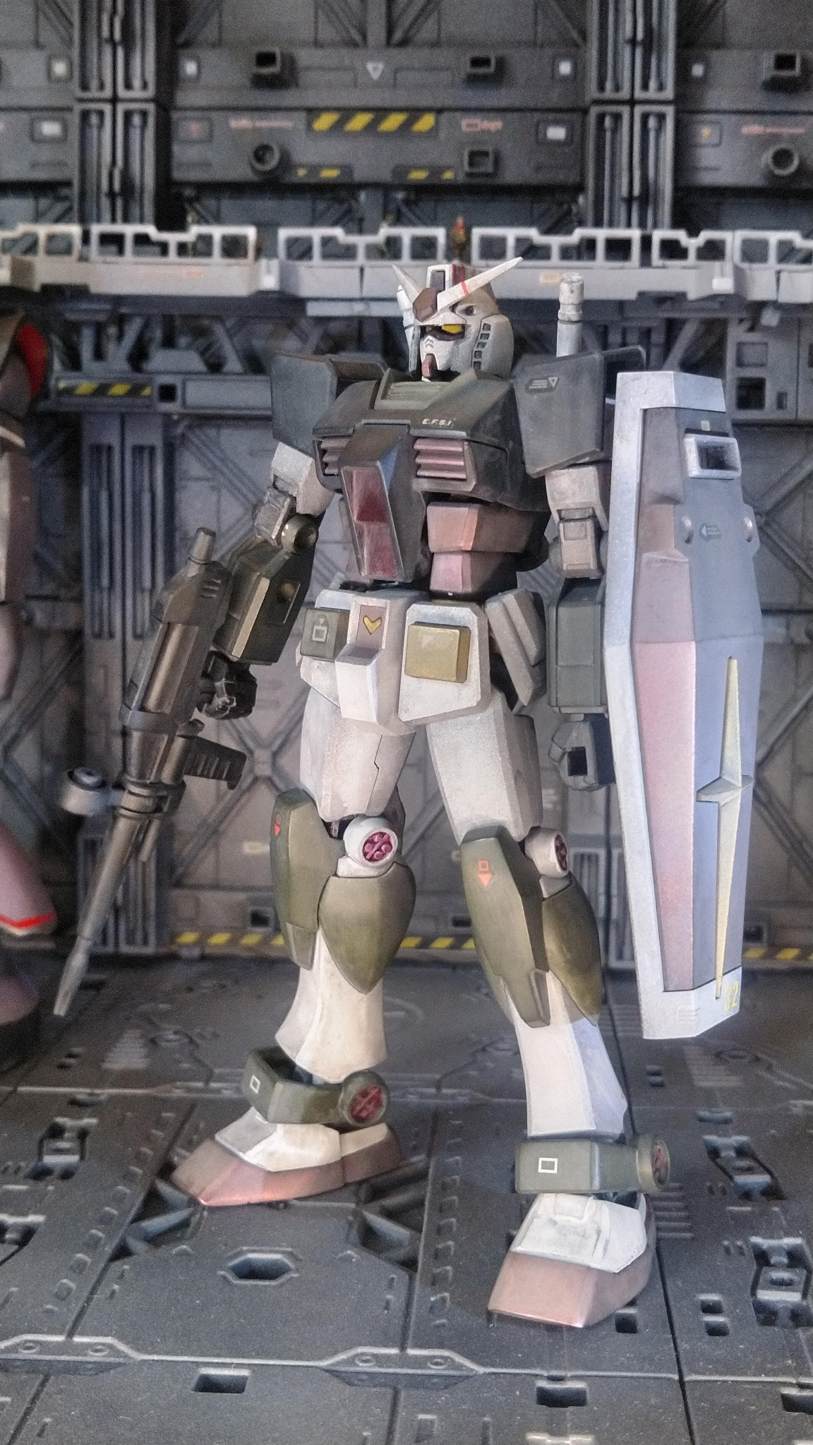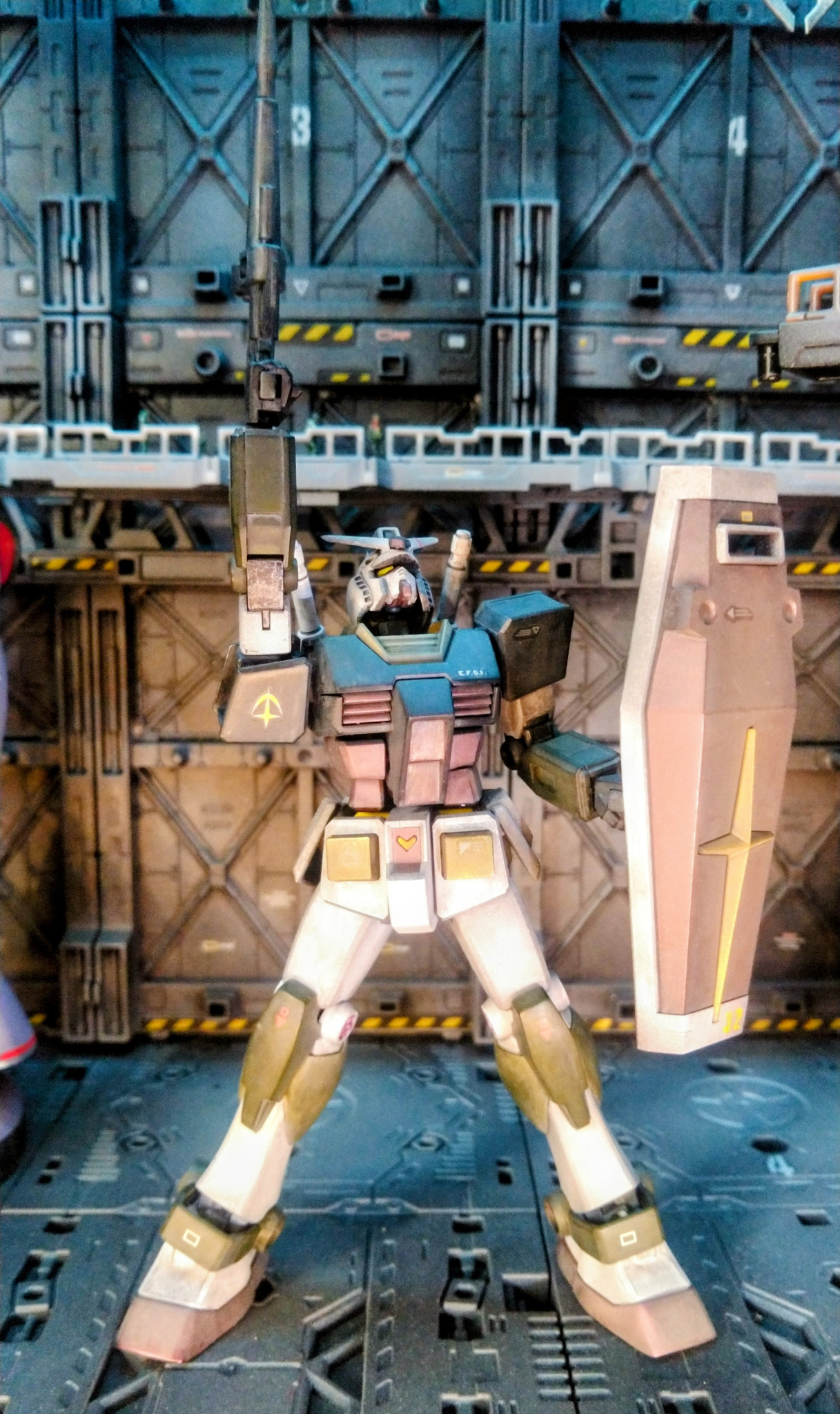 膝と足首の所を少しディテールアップし、合わせめ消し、適当なデカールとウェザリングをしたくらいで、形ははそのままです。が、完成後、右肩を無理に動かし過ぎたようで割れてしまい、結局右肩の関節は自作となりました。