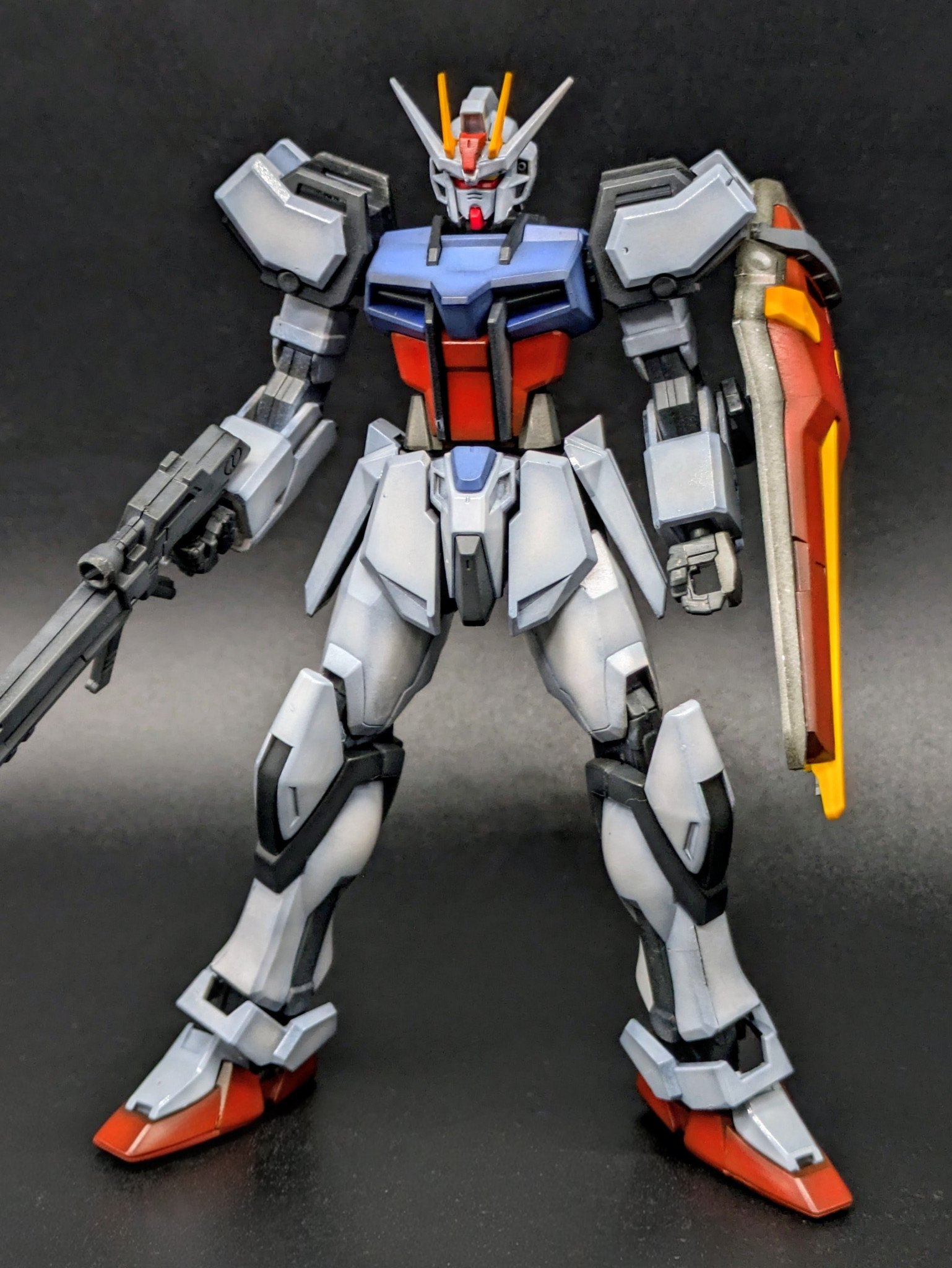 今回はEGであまりマッシブではないので、せめて重量を感じる方向に塗装。トリコロールの1/144全塗装とかめちゃくちゃ王道のはずなのに意外と経験少なく新鮮でした。