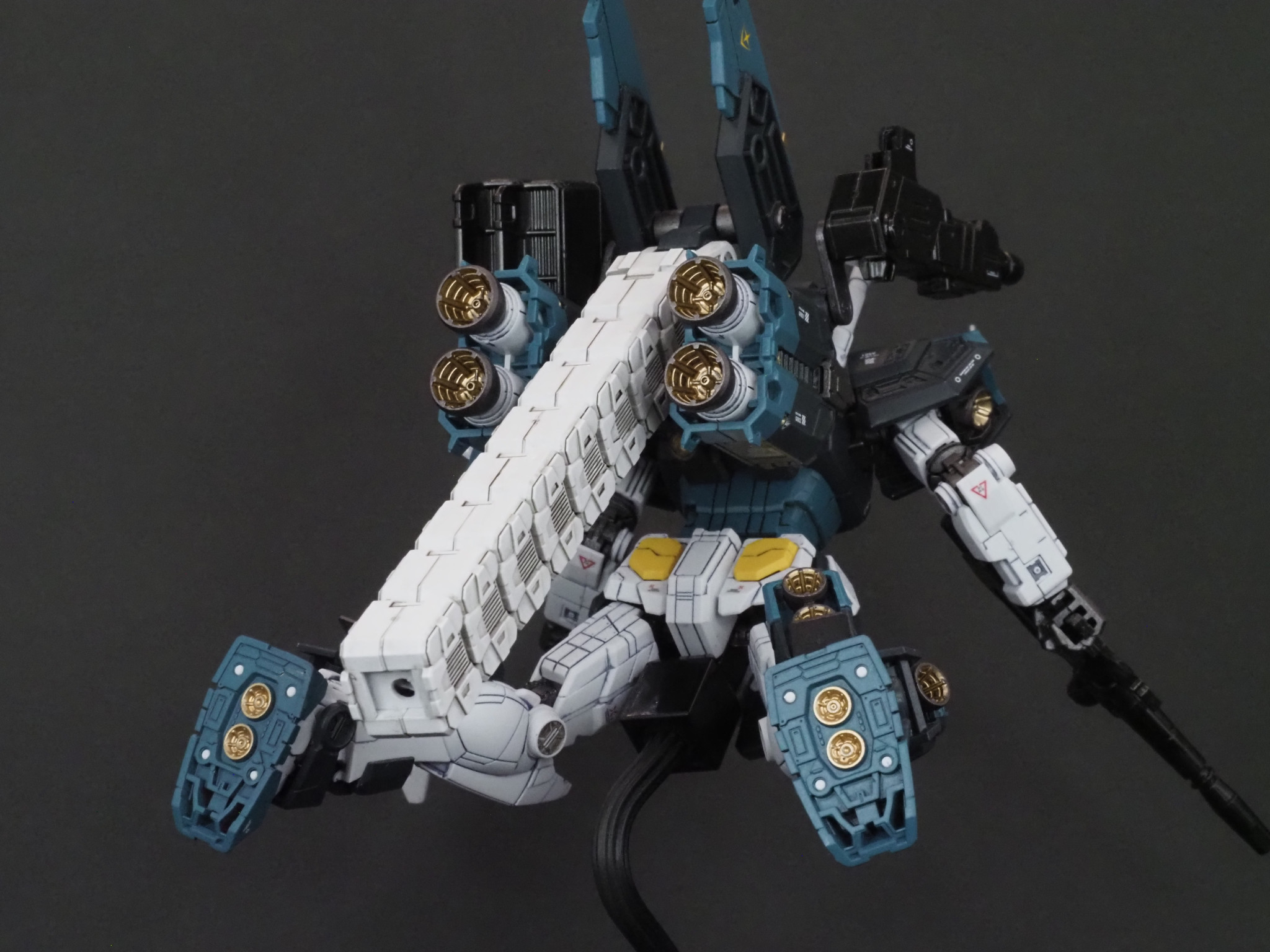 武装配置やテールスタビライザーのシルエットなど全体的なイメージは重装フルアーマーガンダム7号機を参考にしています。