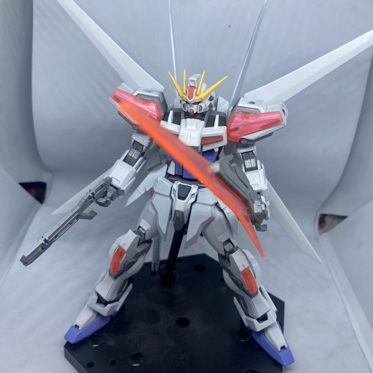 色味とかの加減なのか云われてやっとああストライクガンダムだ〜。と認識するくらいオリジナリティのあるデザイン、クリアパーツも安っぽさが全然なくてむしろカッコいいアクセントになってるのがたまらんです。