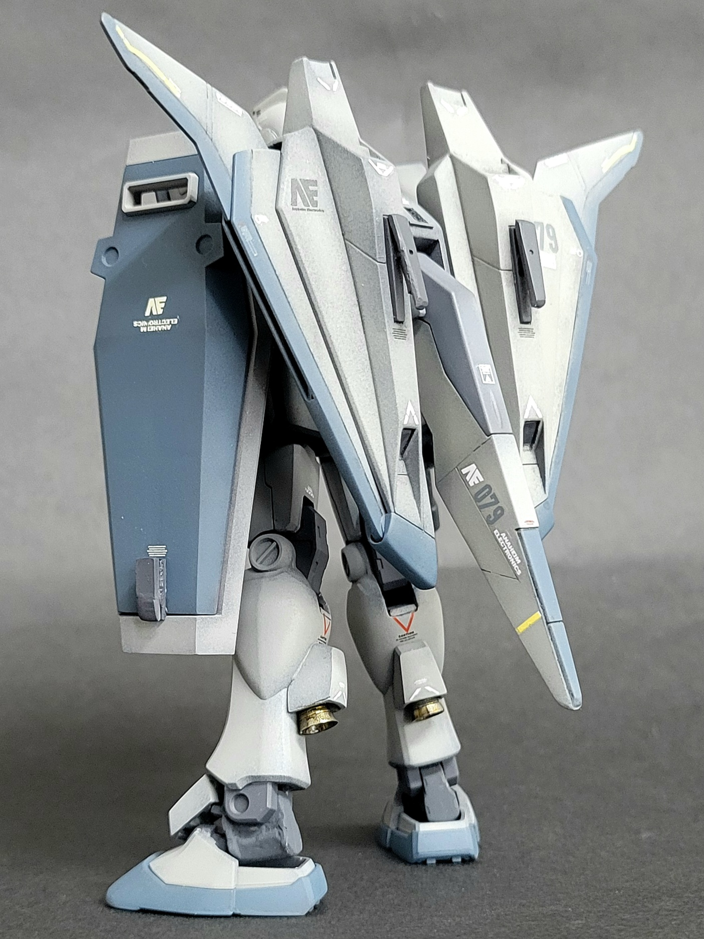 足がスライドしやすいように、膝を加工し、ふくらはぎのスラスターを新造。アンクルガードもゼータ風に。