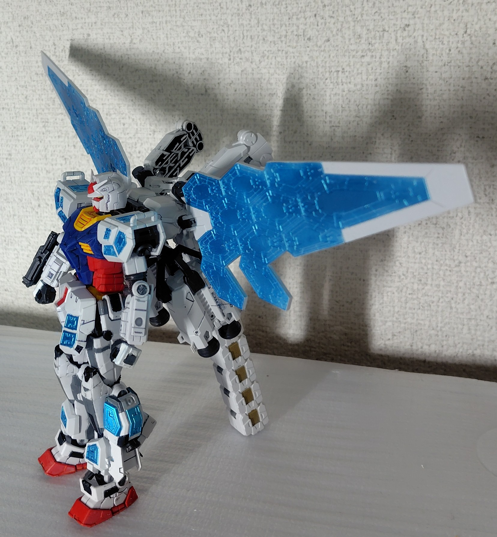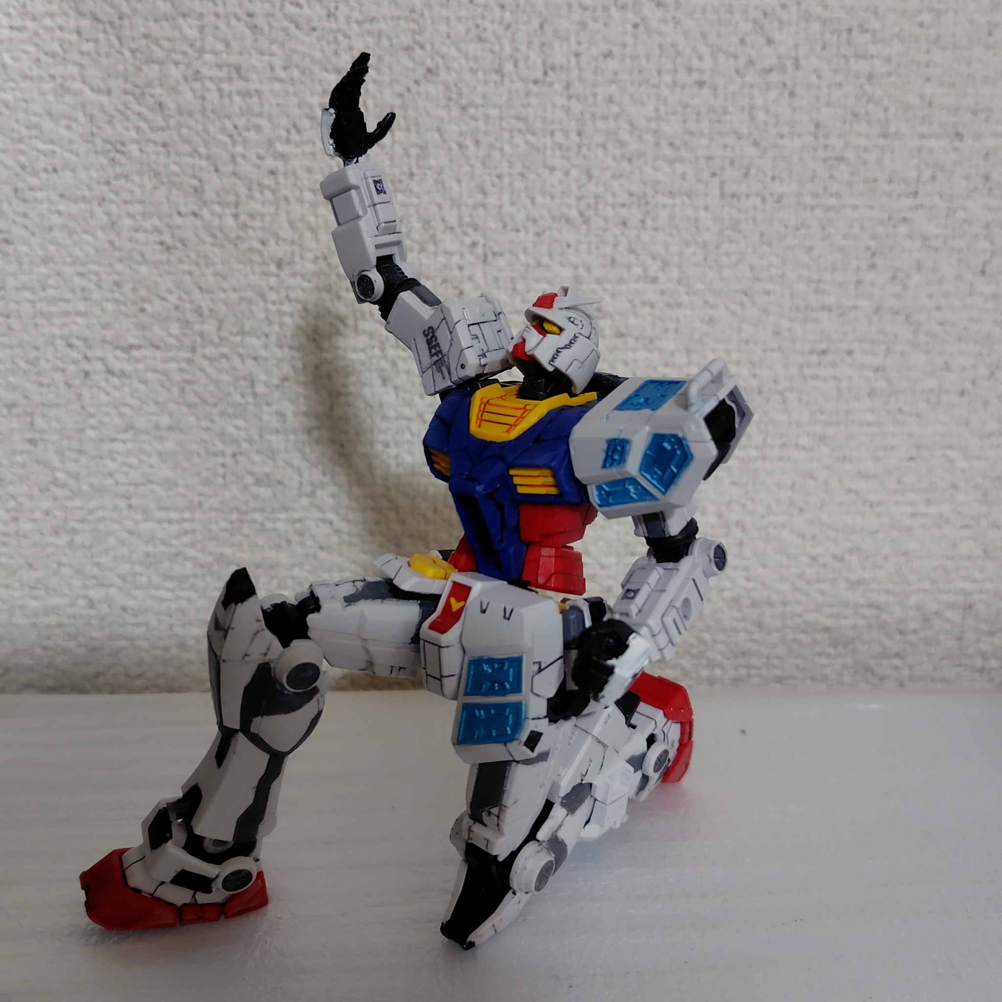 実物をご覧になった方もいると思いますが、万博ガンダムのポーズを当然取れるようになっています。胸部にも色分けがあることに後から気付いたのですが、私にはあまりカッコよく見えなかったので割愛しました。