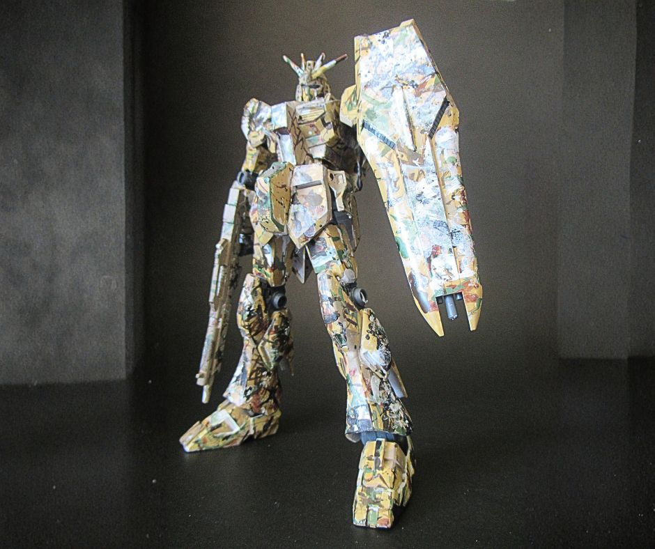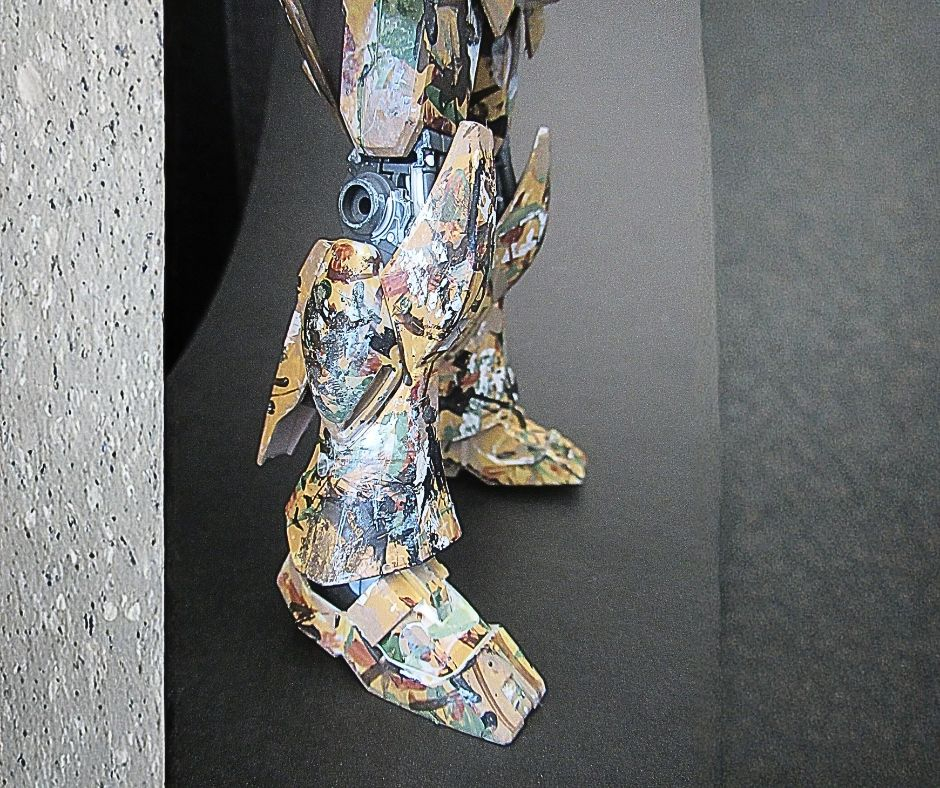 この塗装、如何にも立っているニューガンダムにポロックが絵の具を叩きつけたような雰囲気ですね。
