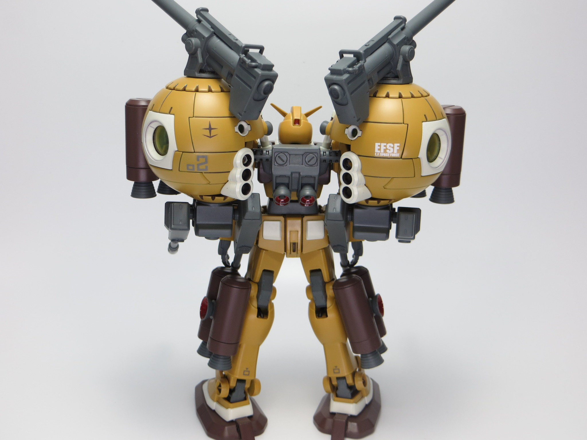 何が良いのかっていうと、トリコロールにこだわらない色で統一とボール二つに合わせたタンクスラスターの追加にキャノンという差別化。これはおかずが進むw