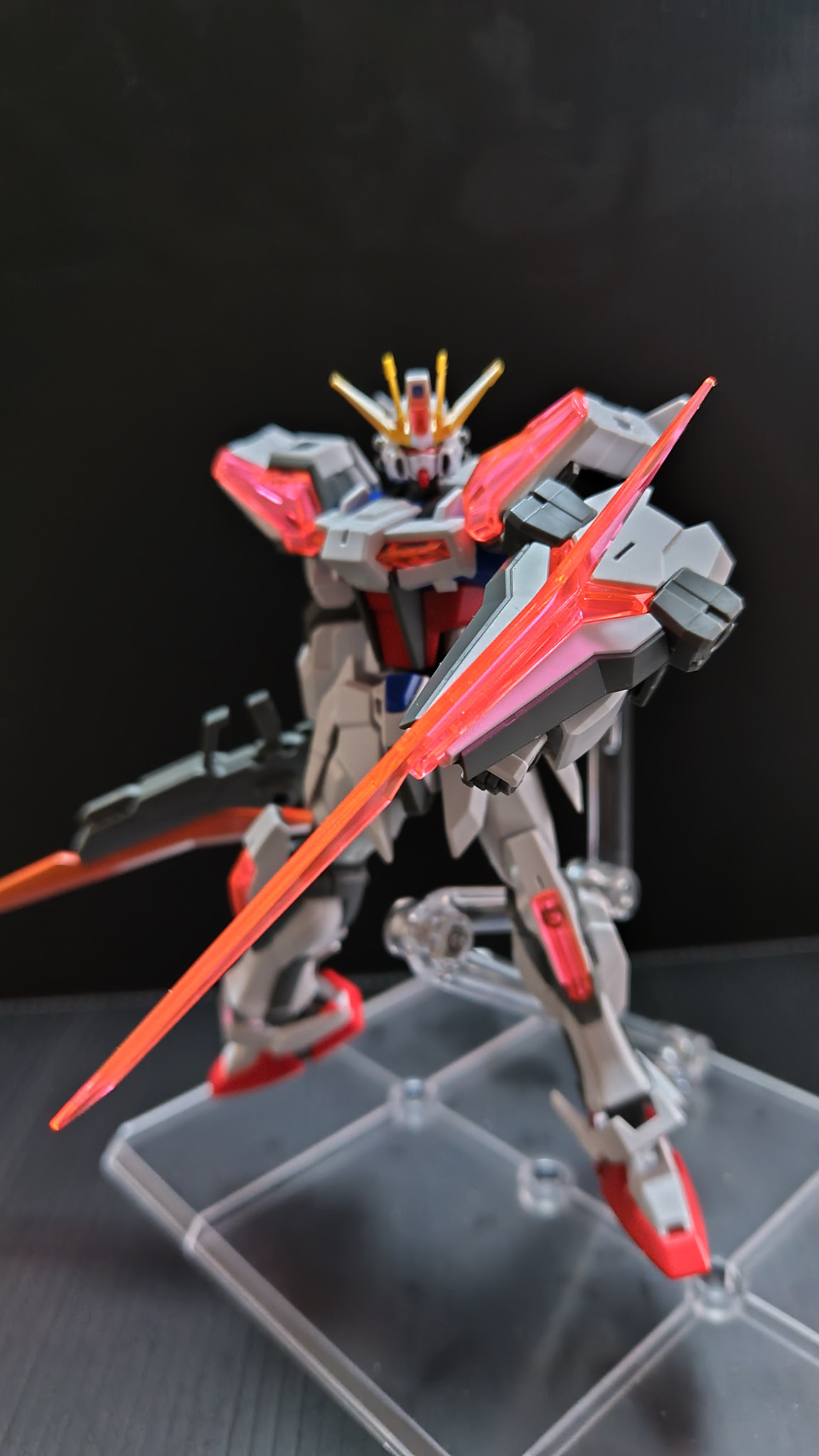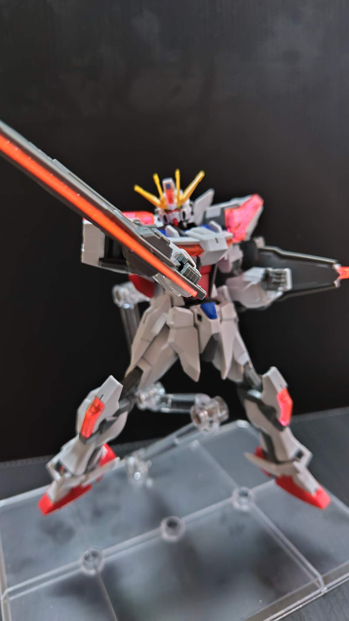 一見するとなんら変わらない『ビルドストライクガンダムEG』くんですが……関節がヘタレてきていたので、EGストライクガンダムくんの関節を移植し、更に何故か紺や青紫になっていた箇所をストライクに変えています(* ‘ᵕ’ )