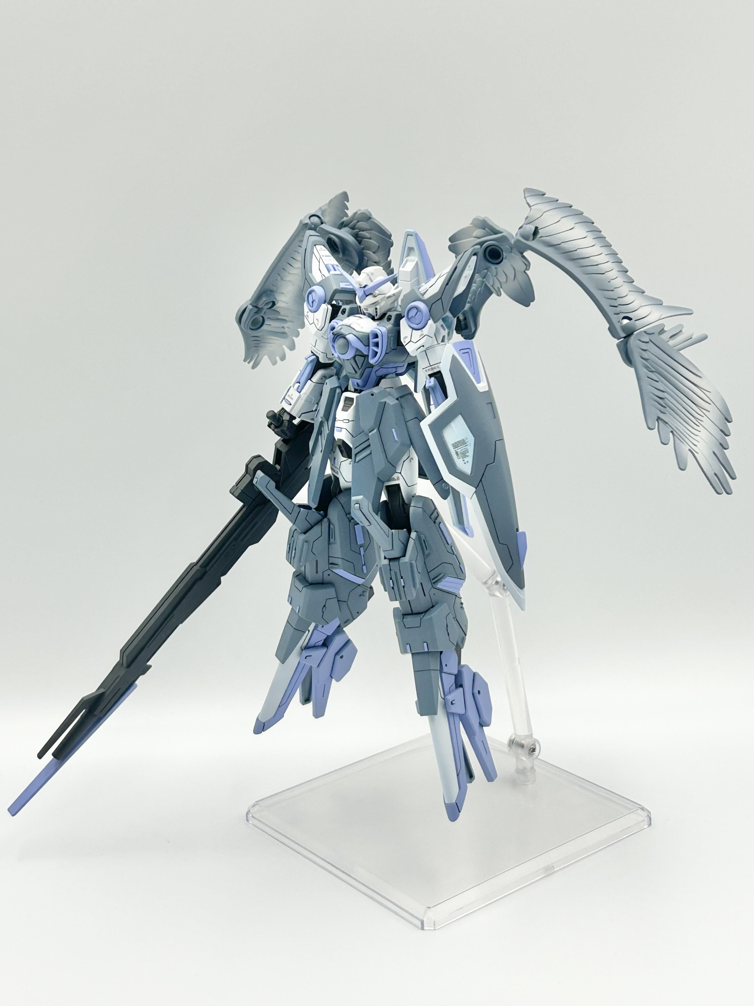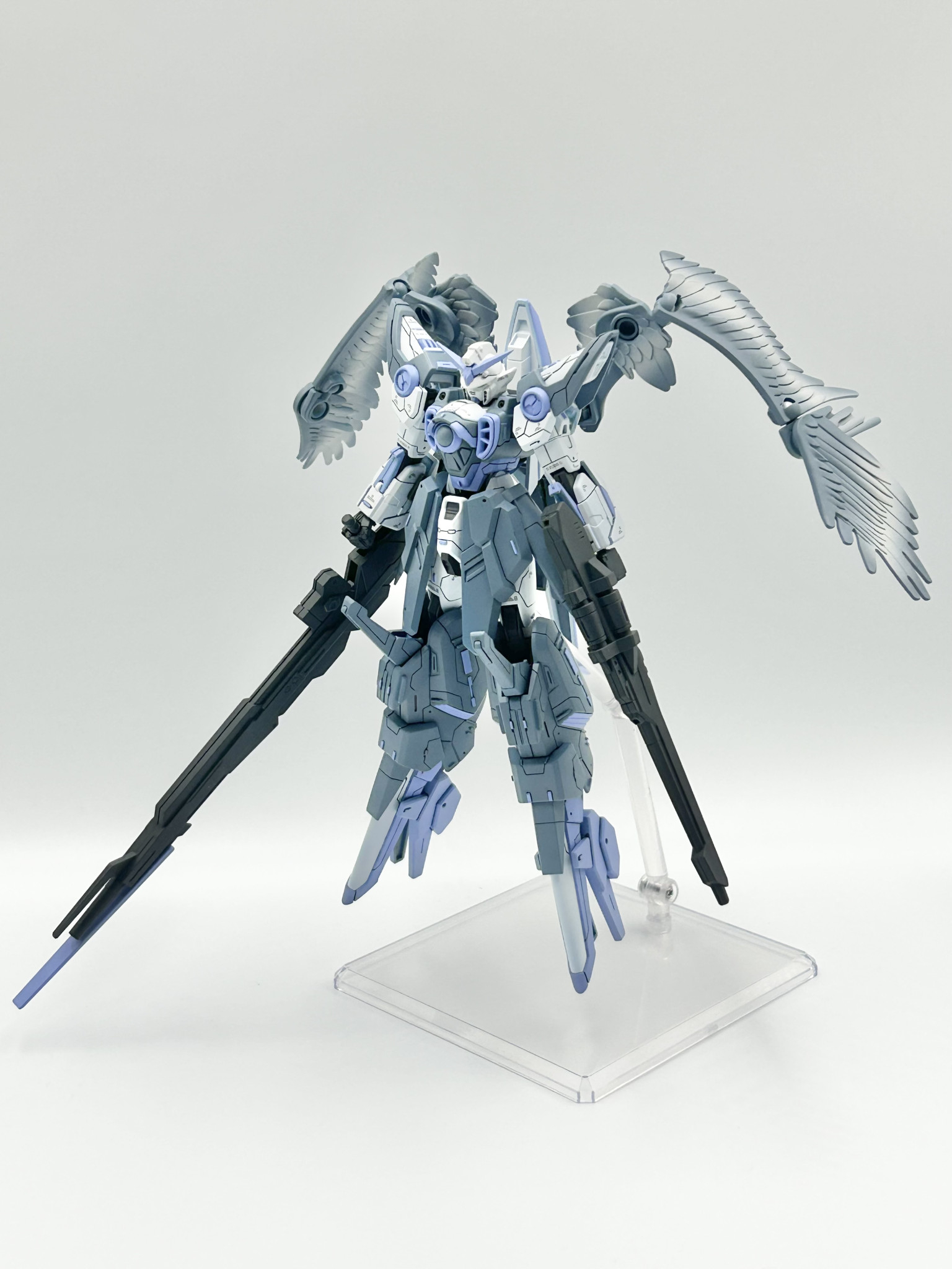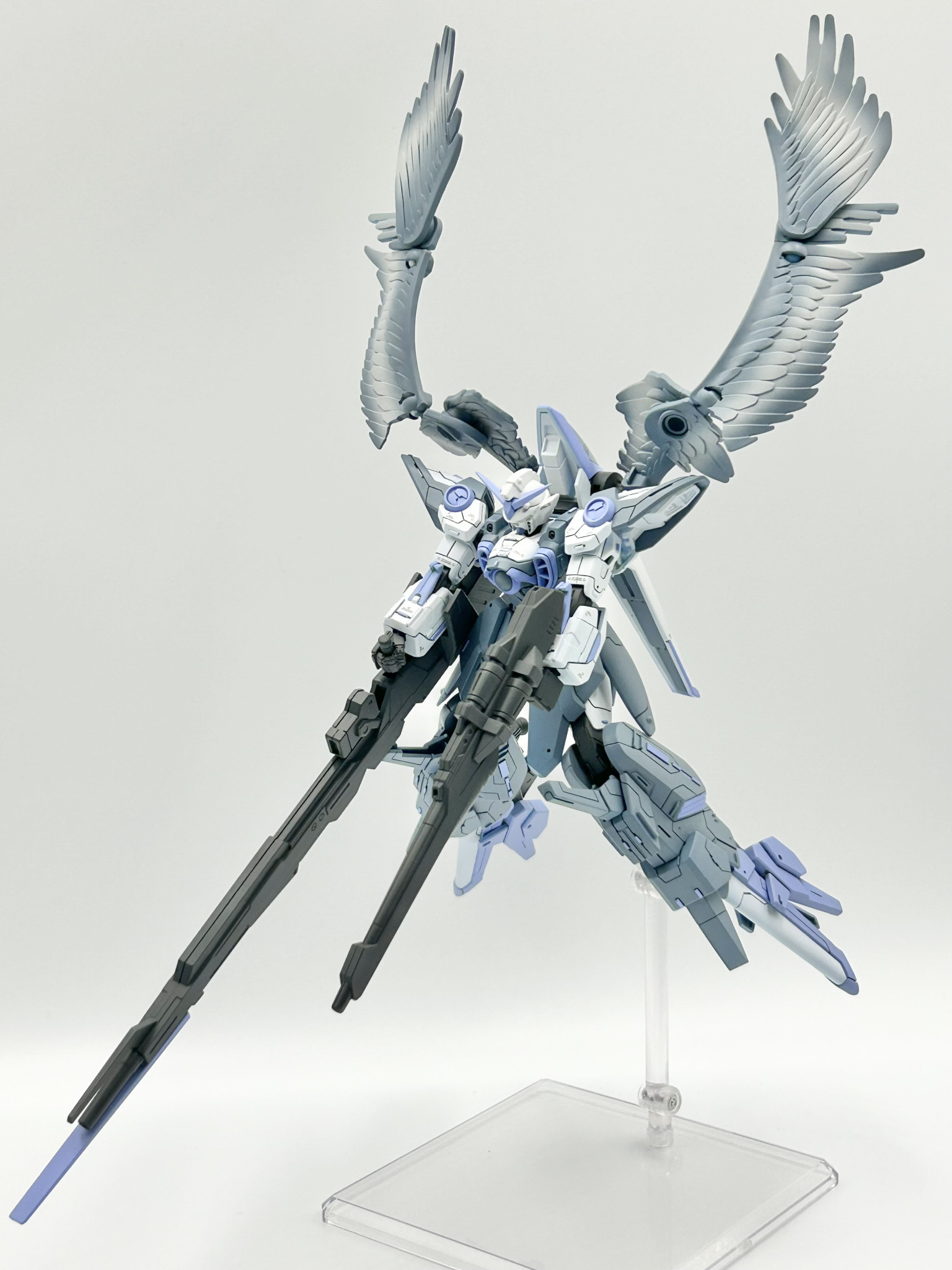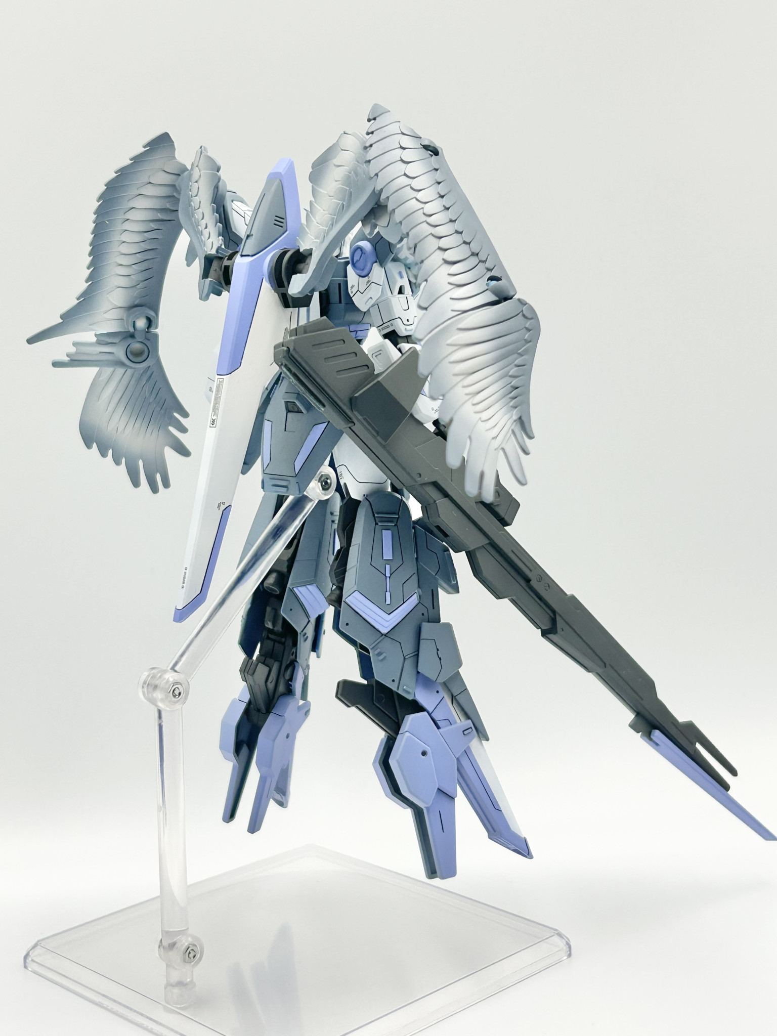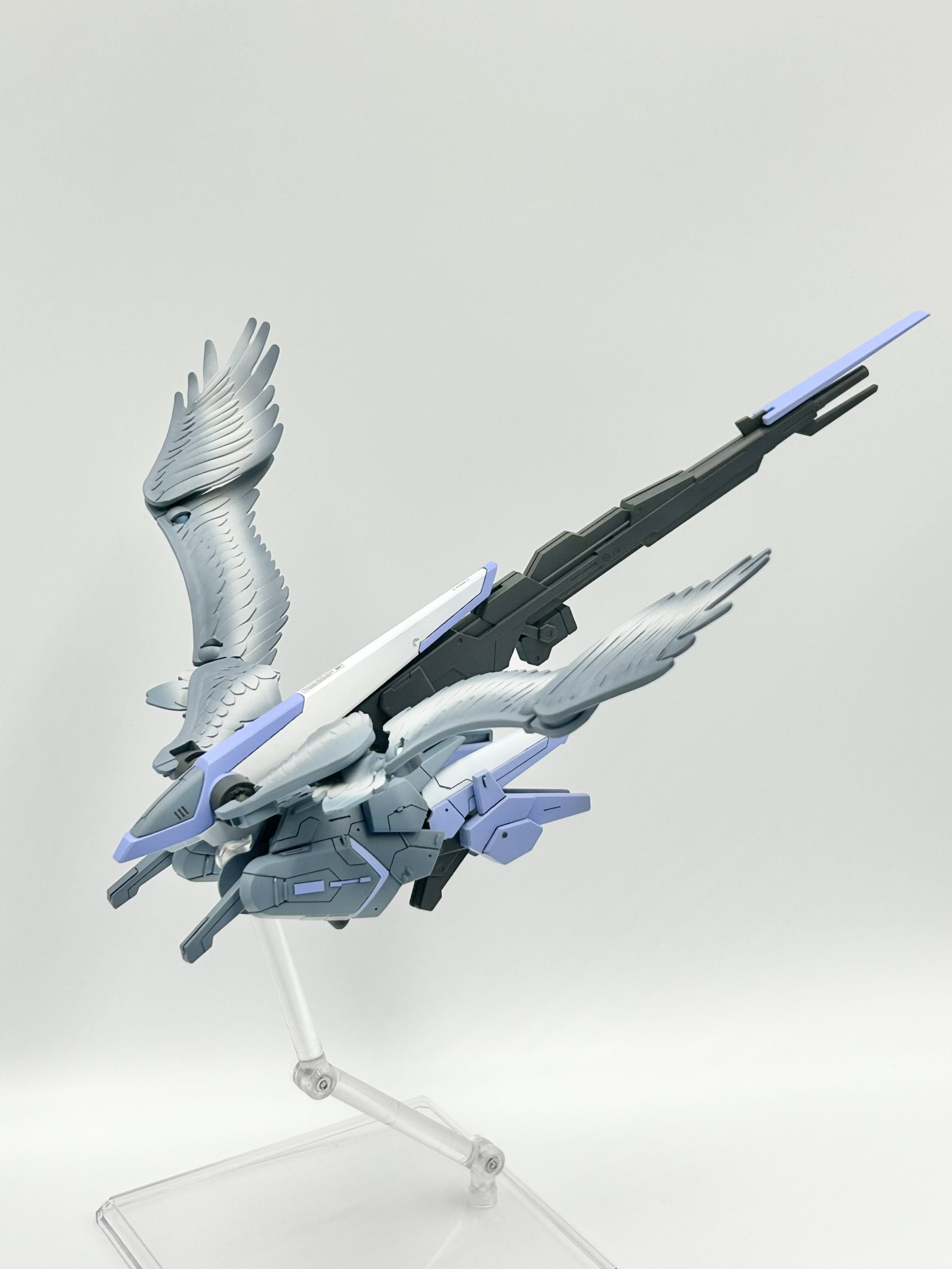 劇中同様に、ロボット的な機体本体と、パックパックは、有機的なウイングに換装。