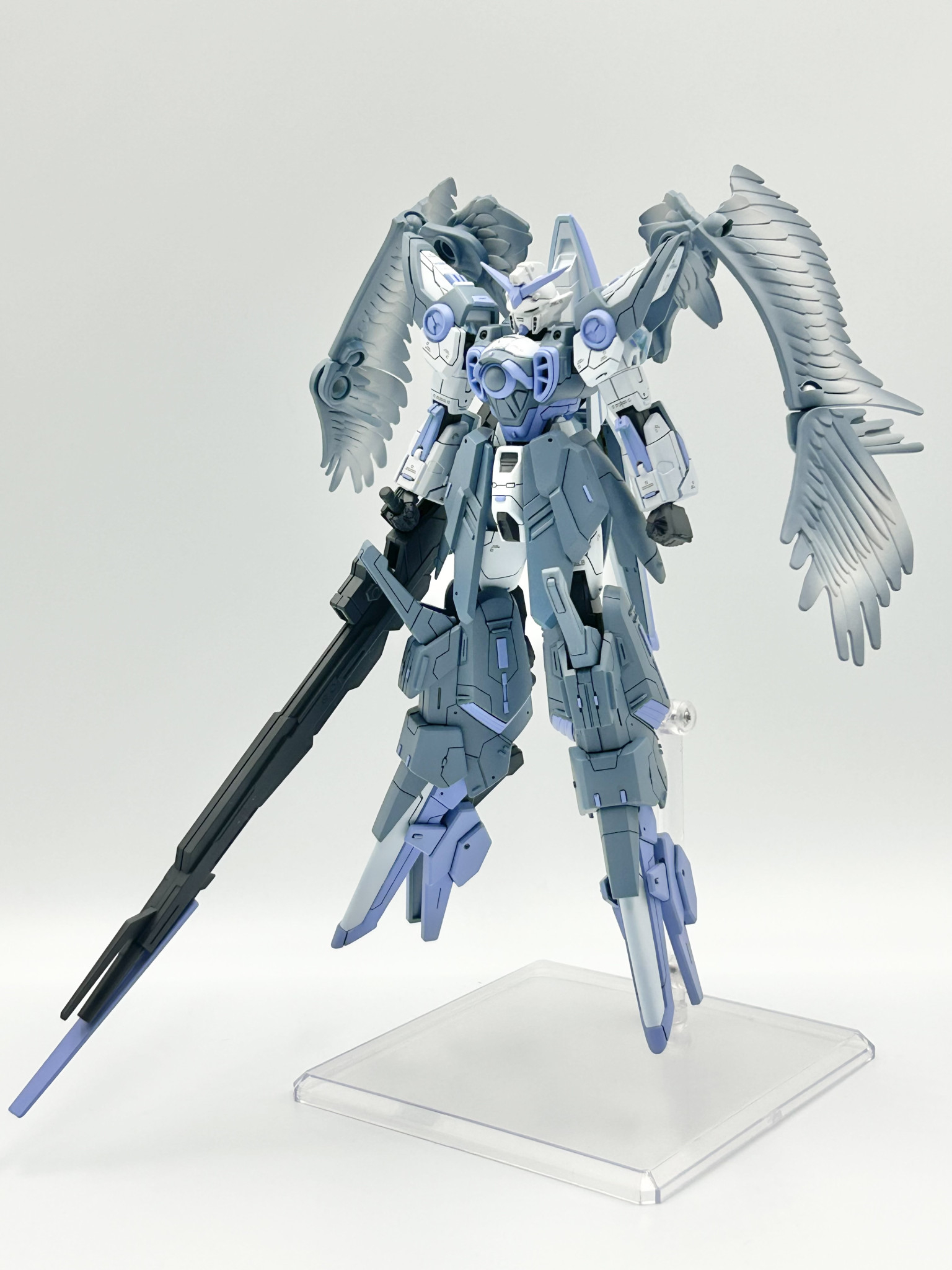 足のハイヒール化が脚長効果になって全体がスラッとスタイリッシュになってますね👍✨ウイング本体のカラーリングも造形もクールでカッコ良いです😆✨オリジナルのEWモードも美しい羽根とフルアーマー的なアプローチの脚部がこれまた素晴らしいですね😄✨