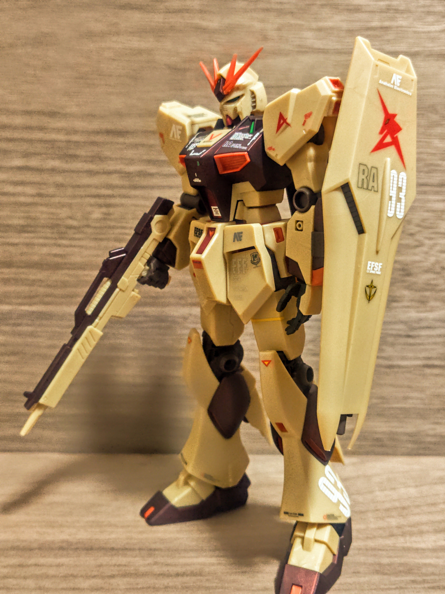 そんな中でνガンダムの最期の姿であるアクシズショックカラー、想像以上に良い色の成型色でした。