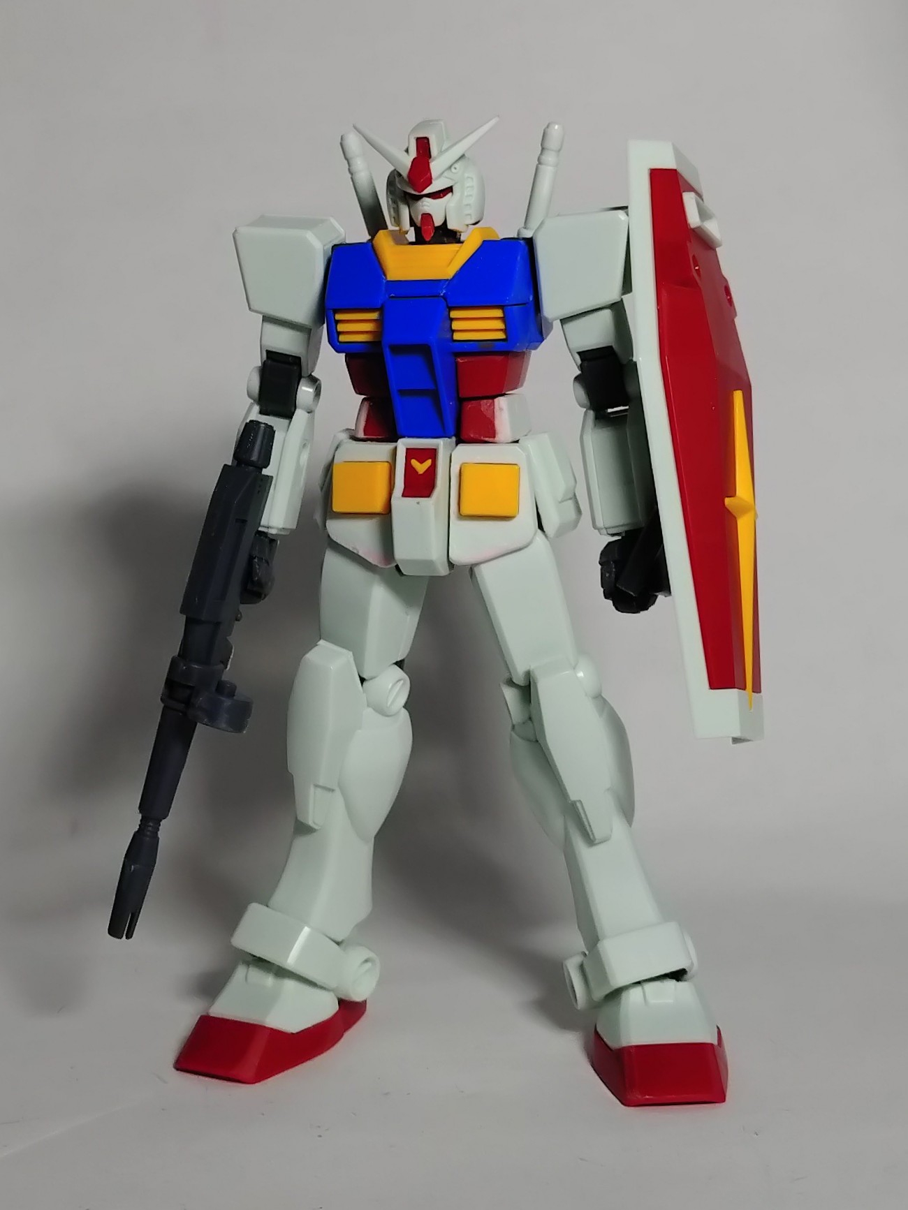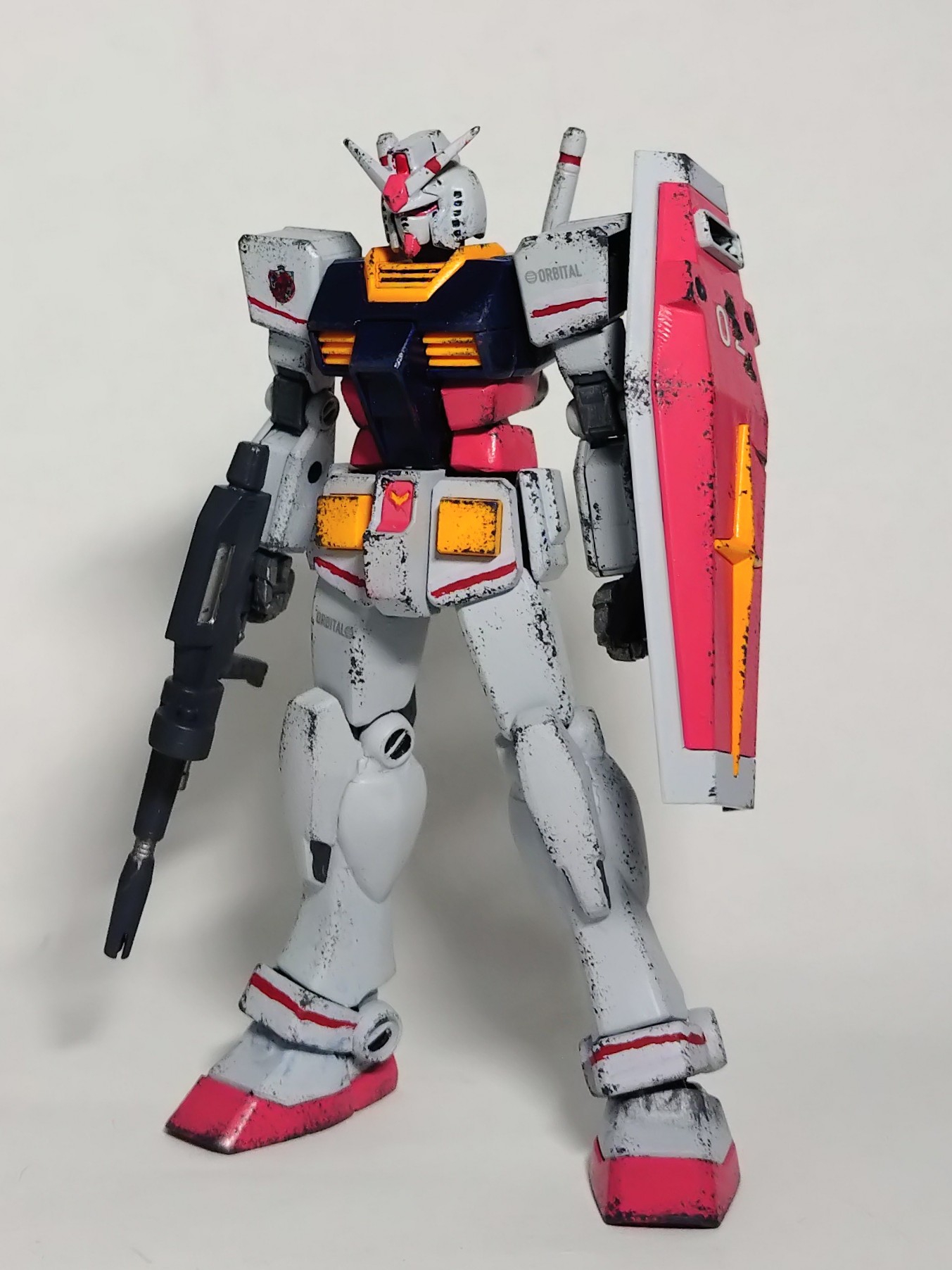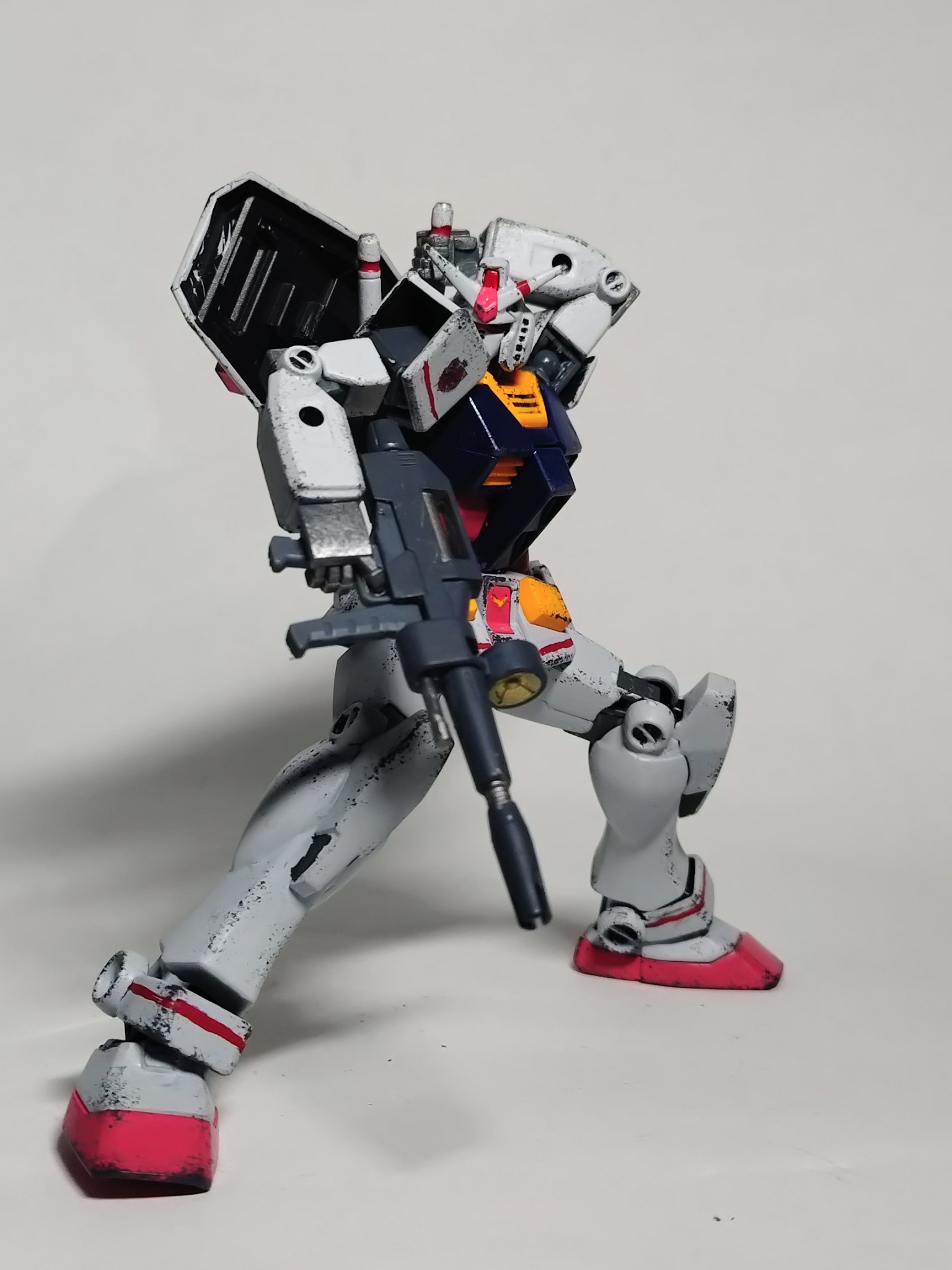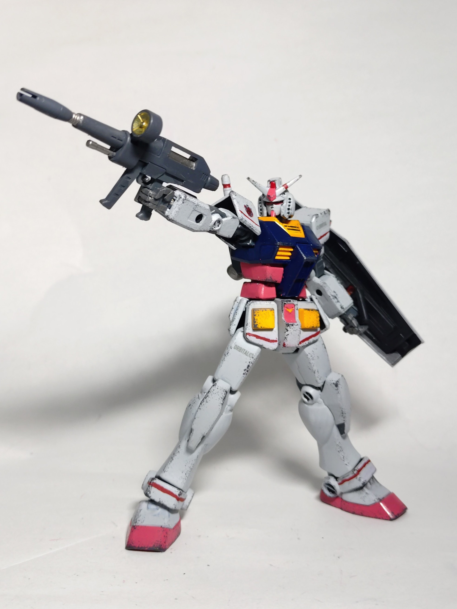 主に腰周りのボリュームアップやシールド位置の変更、ライフルや手をHGUC(リバイブ)より流用して初代HGUCガンダムに近いガッシリめのガンダムを目指してます。