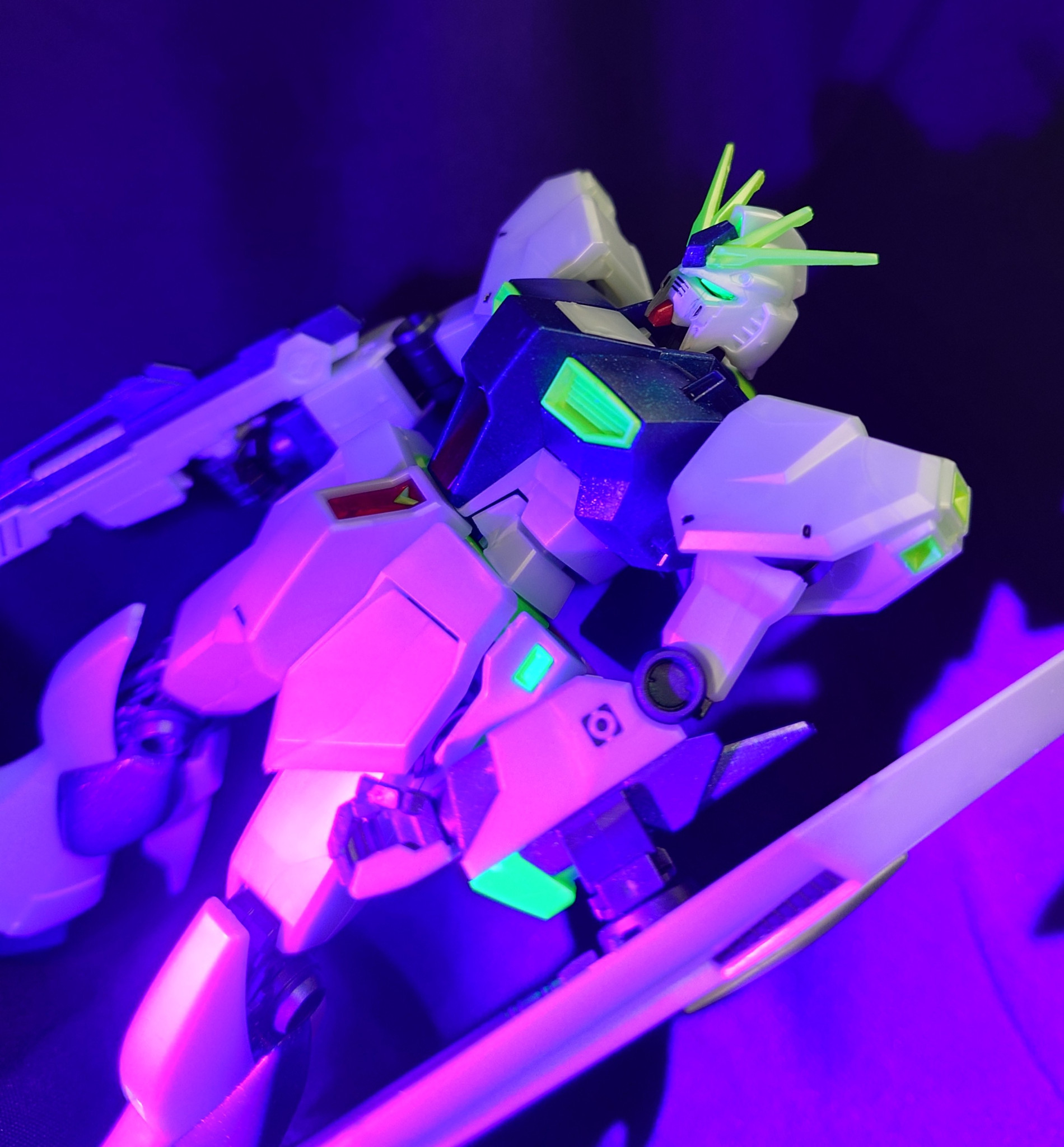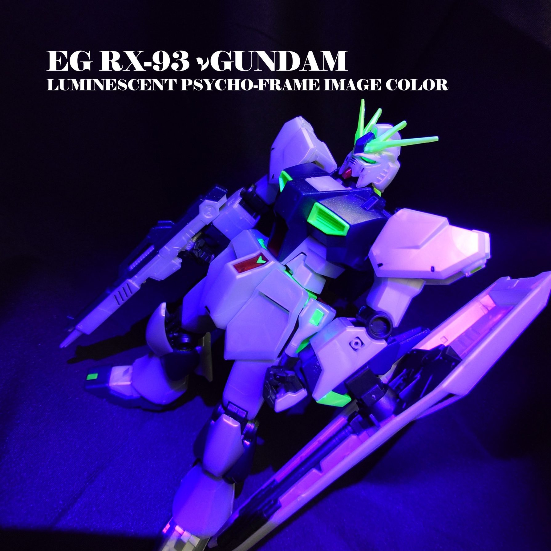 EG νガンダム サイコフレーム発光イメージカラーをパチ組み製作しました。久しぶりのパチ組です(gundam-kao5)このキットはあちこちに蛍光樹脂が含まれている為、塗装すると持ち味が損なわれる気がしたのでパチ組です。他の理由もありますが、そこは後程…