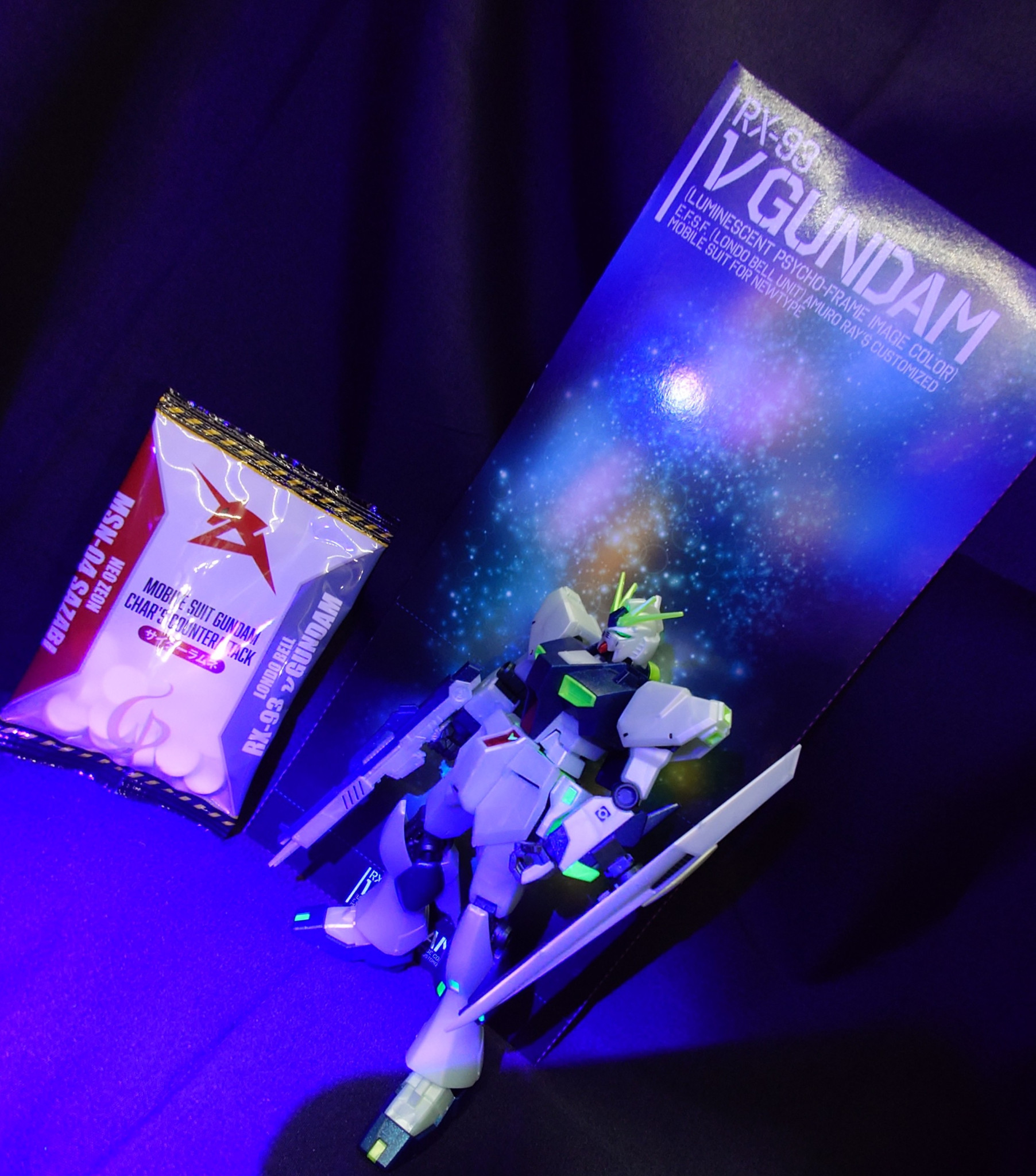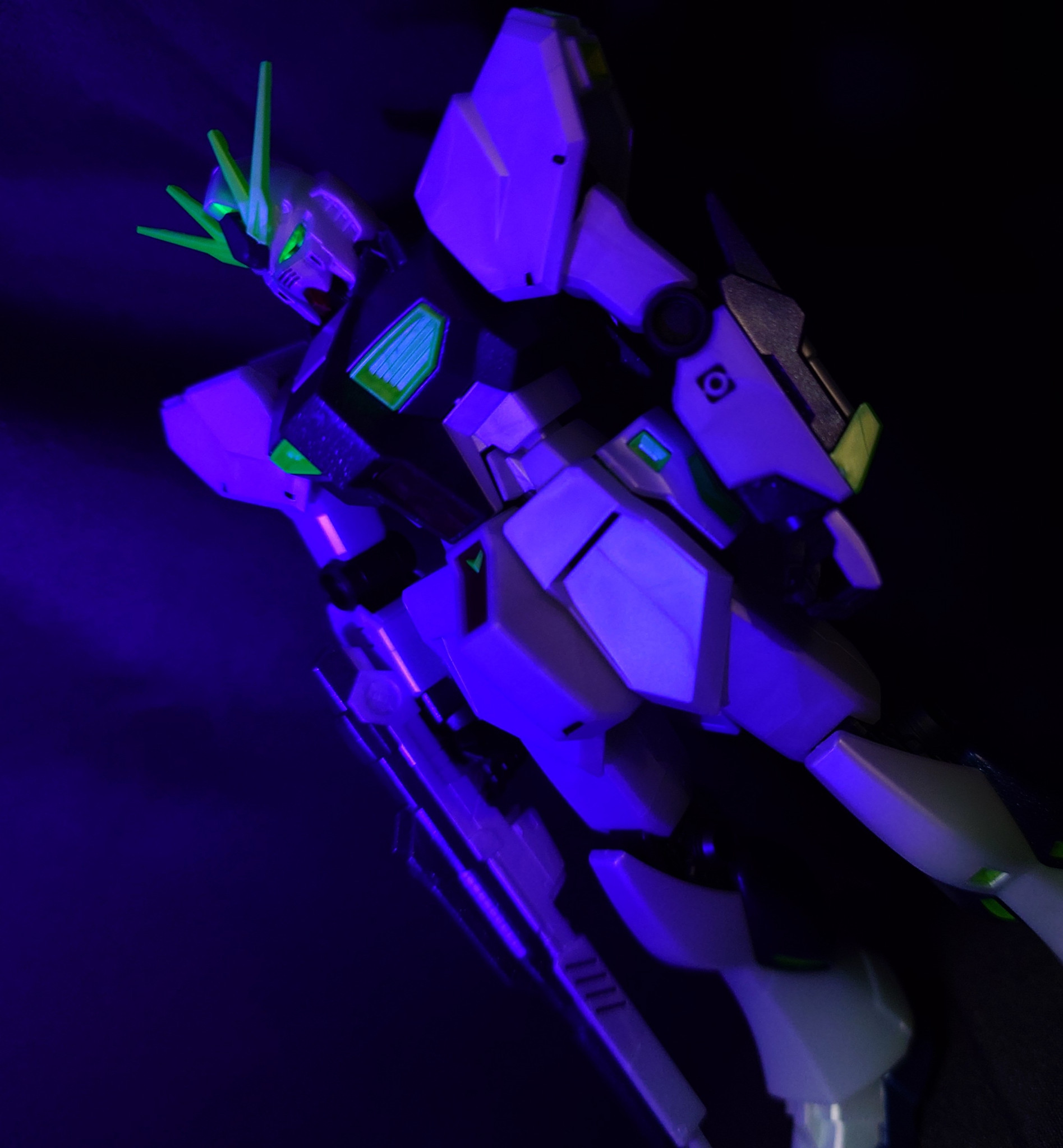 ブラックライトを当てると、あちこちいい感じに発光します(zaku-kao2)