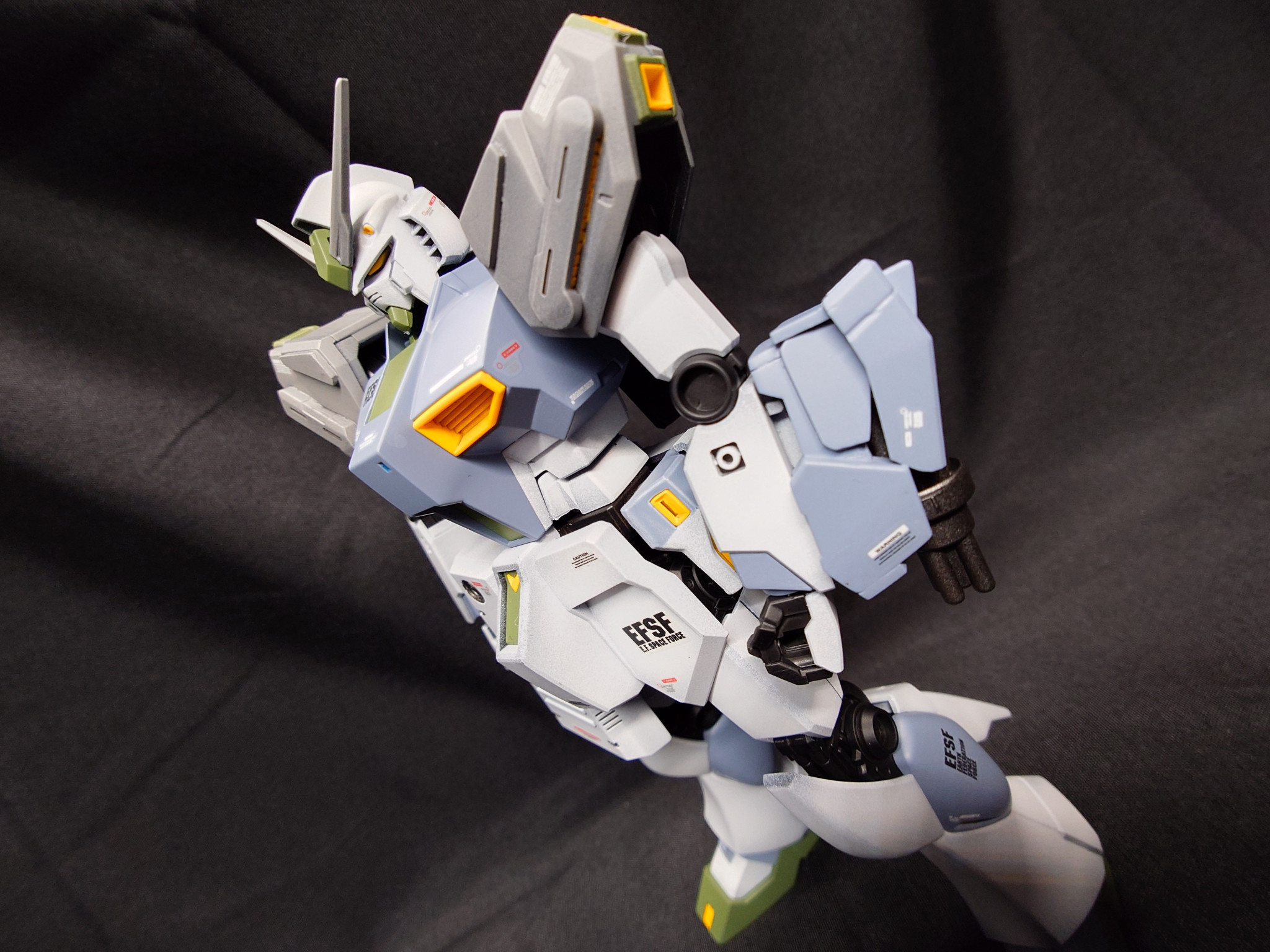 全身の色合いに関してはこれまでの量産型νガンダムというよりは『キルケーの魔女ver.』を参考にしています。ホワイト部はほんのりグラデーションを意識して塗装しています。