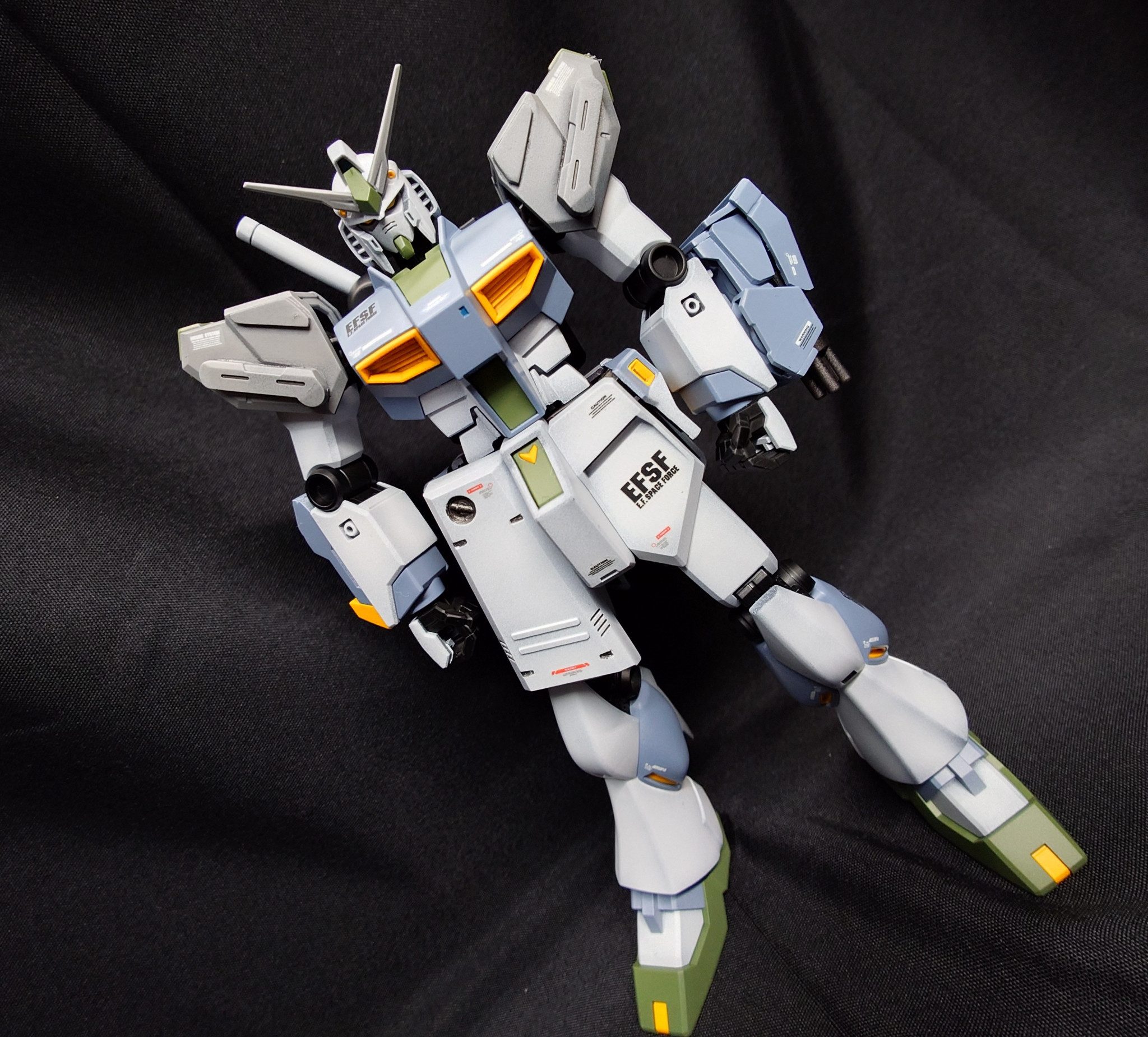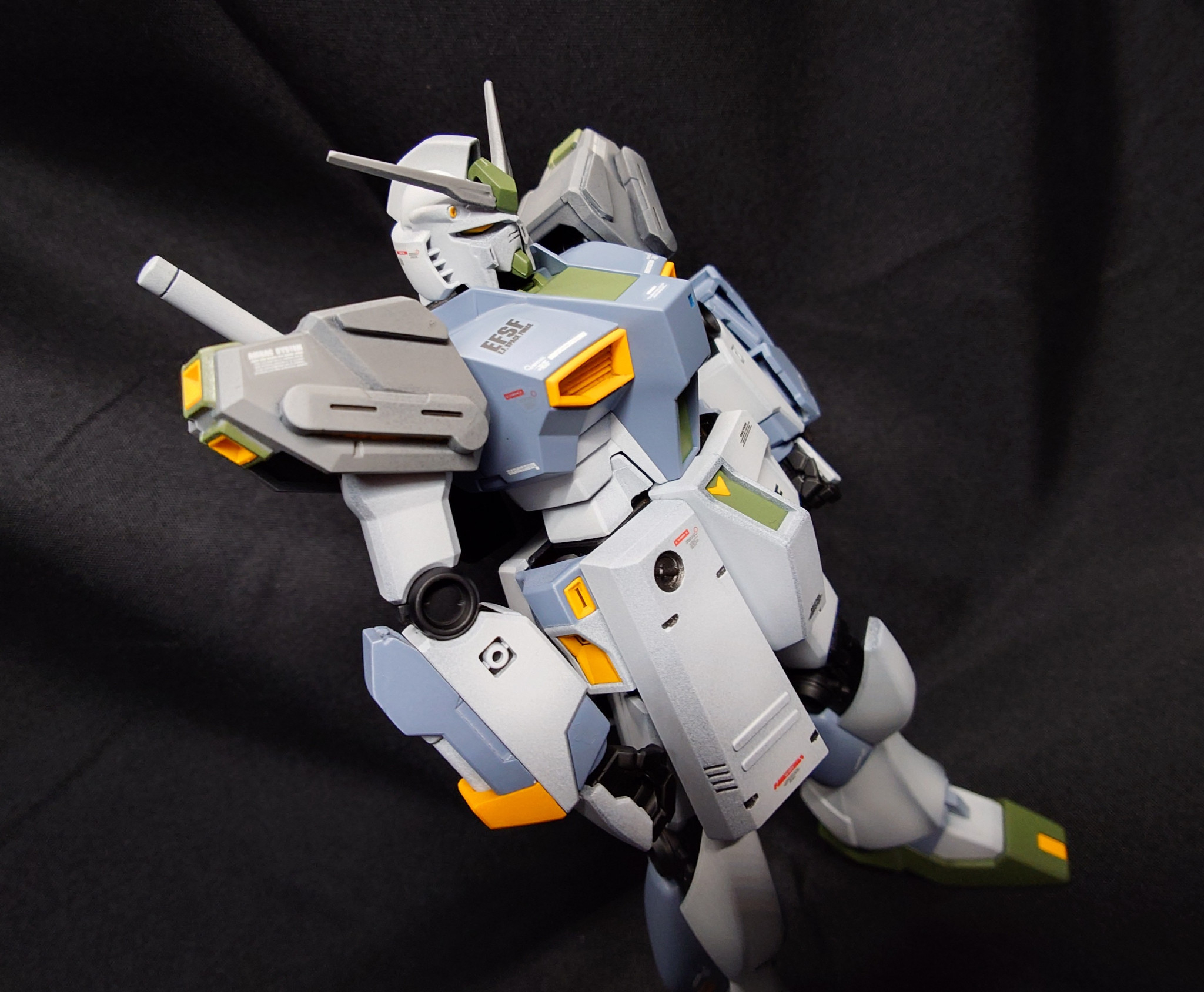 ブレードアンテナ、肩部アーマー、胸部センサーを変更しています。左腕にはガトリングを装備しています。この辺りは『キルケーの魔女.ver』の意匠を参考にしています。ガトリングに関してジャンク+スクラッチで"それっぽく"製作しています(gundam-kao5)