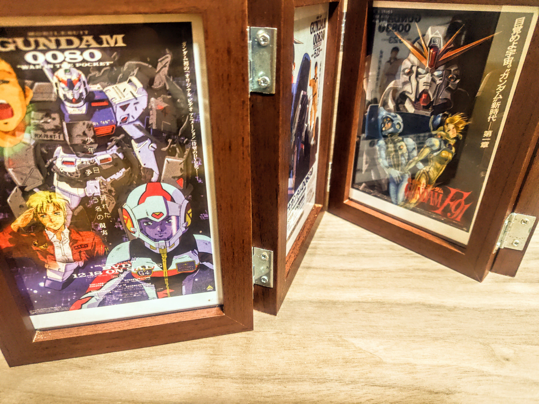 キーポスター(DVDパッケージの1巻とか)、シロー、カレン、サンダースと印刷した4枚を入れ、その前にそれぞれの搭乗機を組んで置いていくのも面白そう。