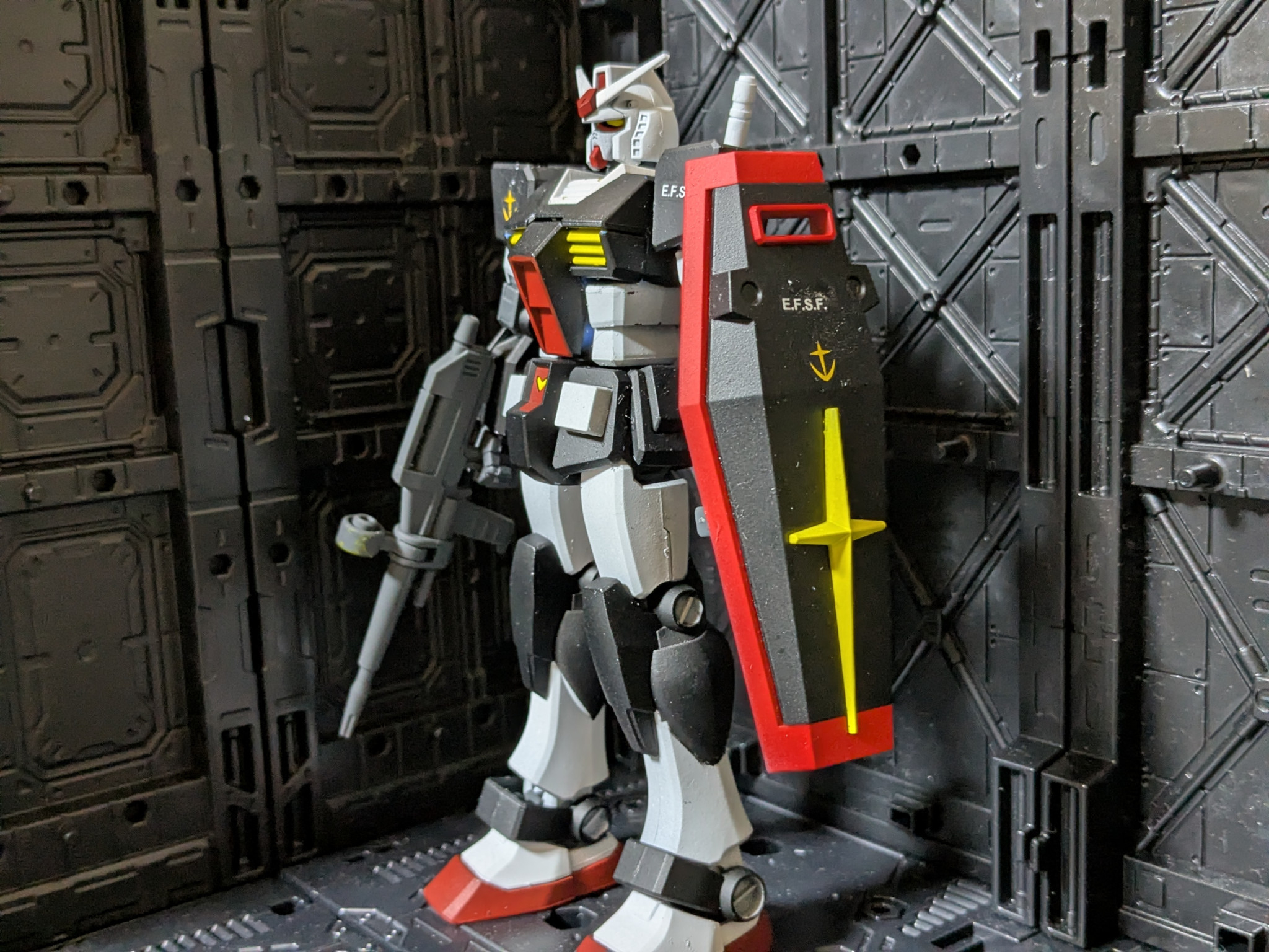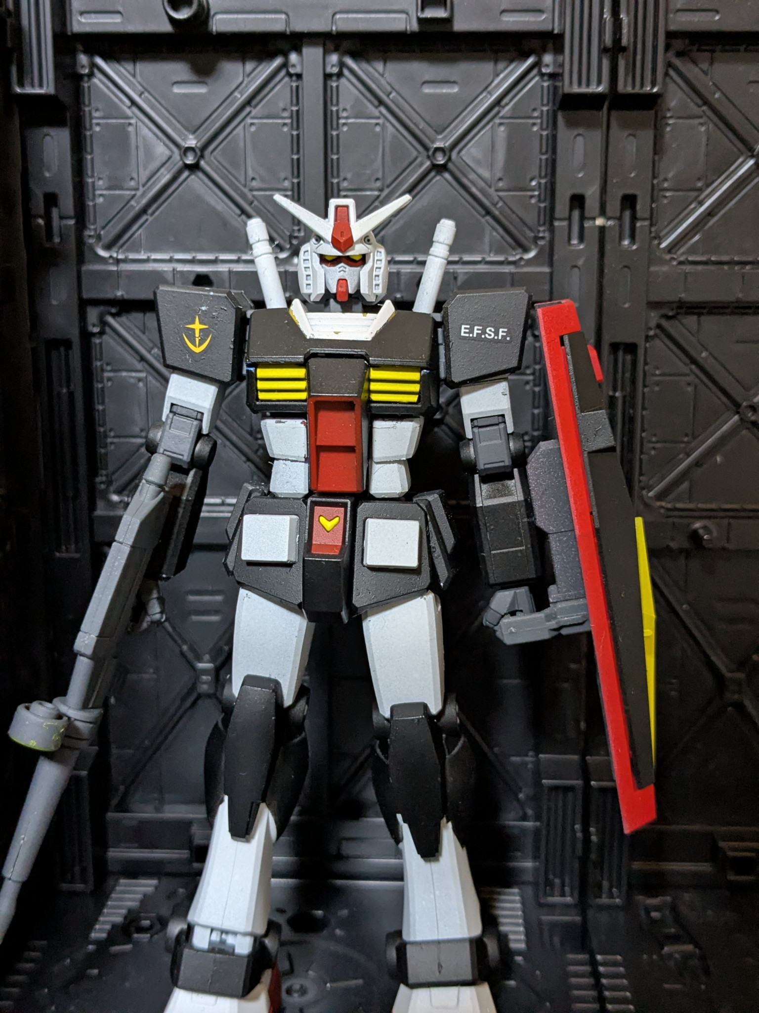 デカール、もうちょい大きめの連邦用貼りたかったんですが、手持ちのがなかった為、0080用のデカール貼りました。