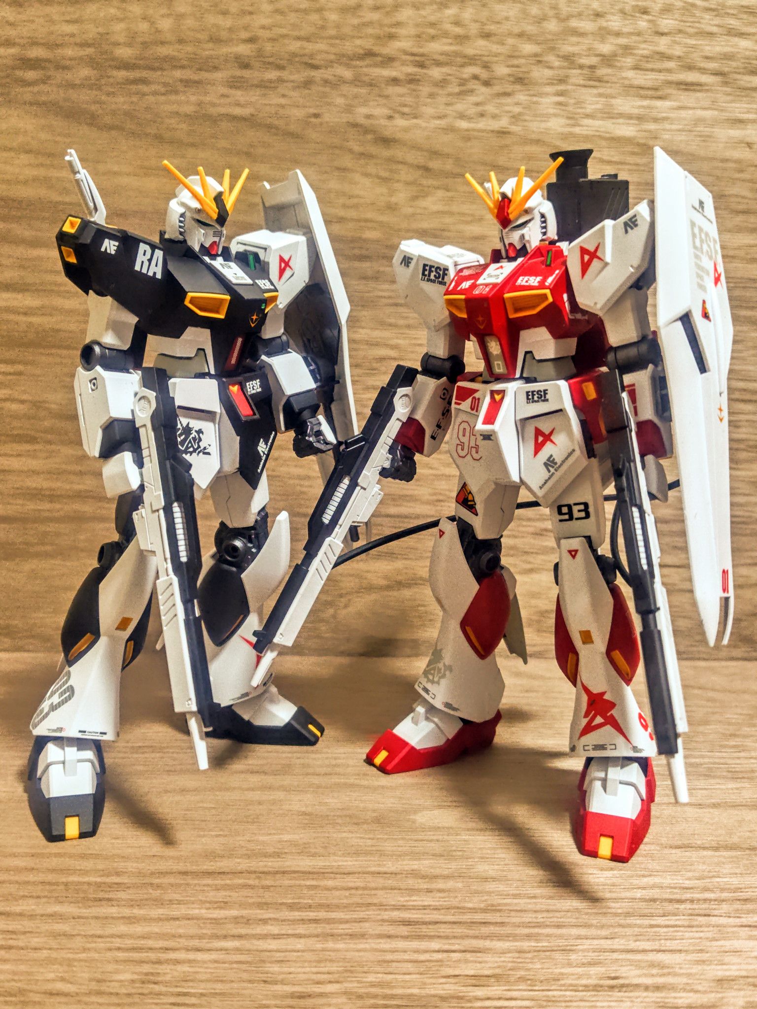 というわけで、コテコテデカール版のノーマルカラーのνガンダムと並べました。