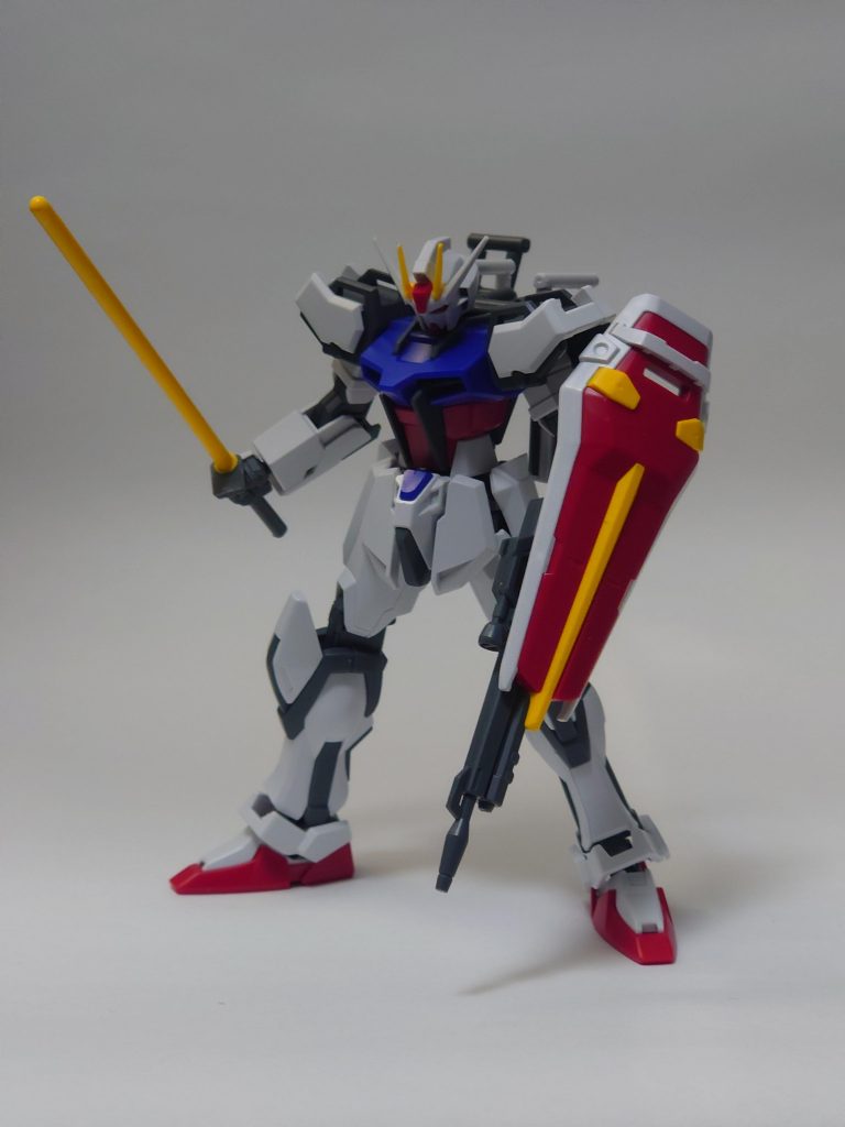 EGストライクに同梱のランナーのみでオリジナルパックを作ってみました。使ったのは接着剤のみ、あえて無塗装の素組としています。