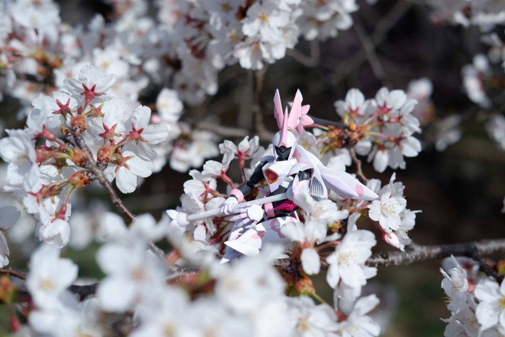 ファルシアの派生機としても考えて、大きな改造はせずに、パーツの配置を変えたりして従来のファルシアのイメージを変えるように桜をモチーフに制作をおこないました