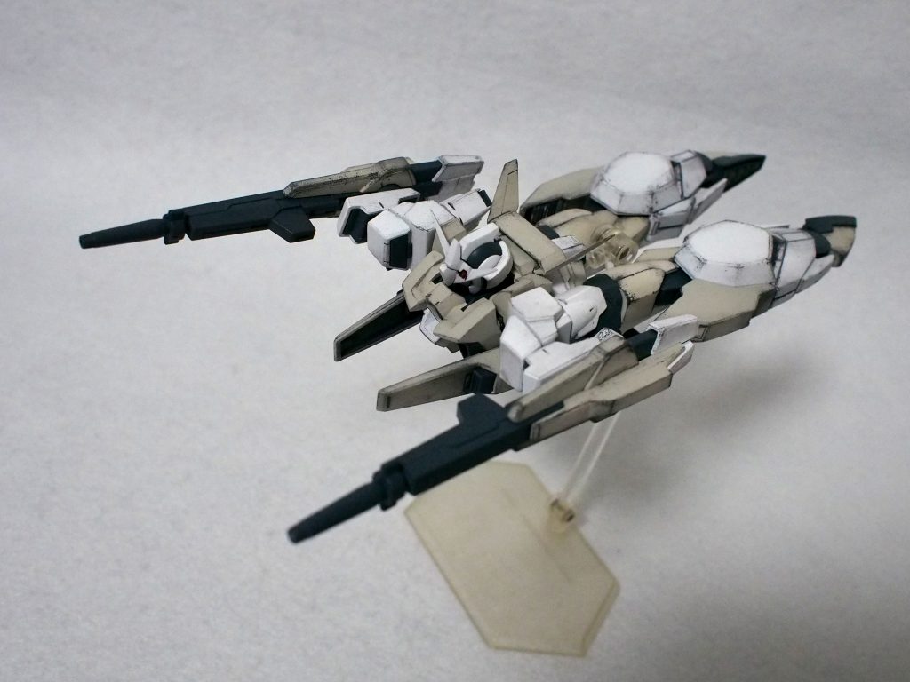 このAGE2、ヤフオクで落としたジャンクキットを組み換えて遊んでいたところ、思いのほか気に入ってしまったので全塗装してしまいました。パーツ分けが優秀なキットばかり使用したので、パーツ数は多かったですが意外と塗るのは苦じゃなかったです。嘘。制作中はけっこうきつかったかも。