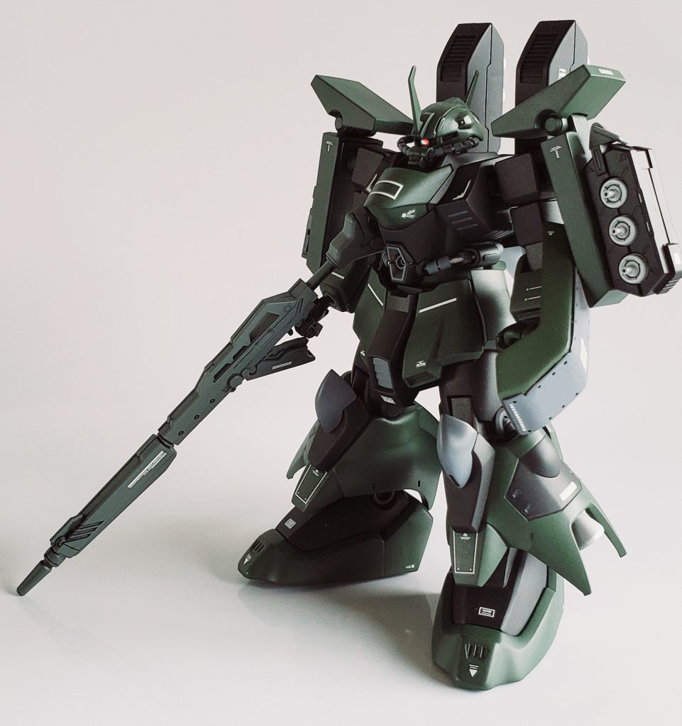 綺麗なモデルですね。装備のバランスも過剰にならずスッキリしたスタイルの良さが感じられます。ザクらしさを残しつつの、アーマーもカッコいいですね!