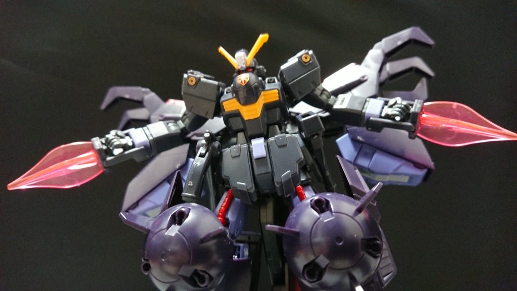 [武装]ブランド・マーカー、ザンバスター、サブアーム&腕部ビーム砲、脚部高出力ビームキャノン、ミサイルポッド×3、膝部ビームスパイク、ファンネル×1、シザーアンカー(?)となっている。